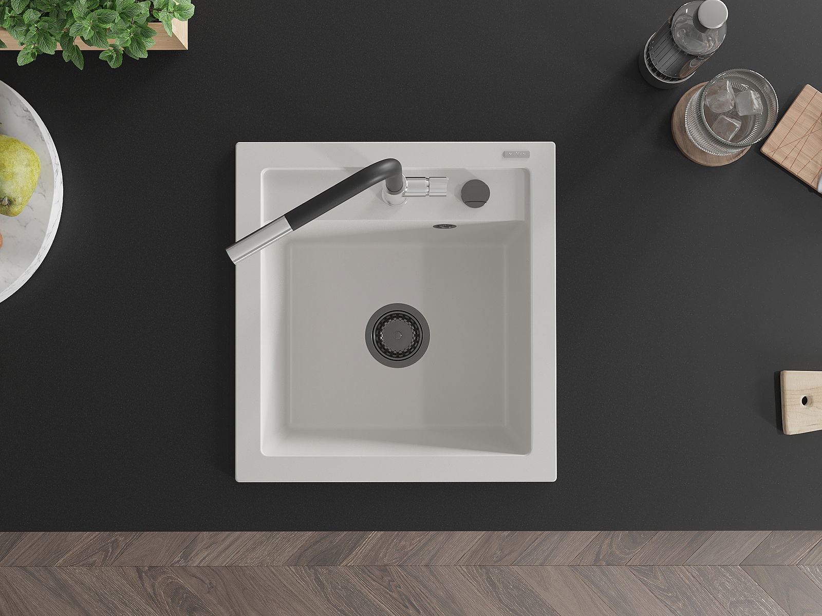 Zlew posiada podfrezowany otwór o średnicy 35 mm do samodzielnego wybicia. Można go wykorzystać m.in. do montażu dozownika na płyn, który wyeliminuje obecność plastikowych butelek w kuchni i nada jej eleganckiego wykończenia.