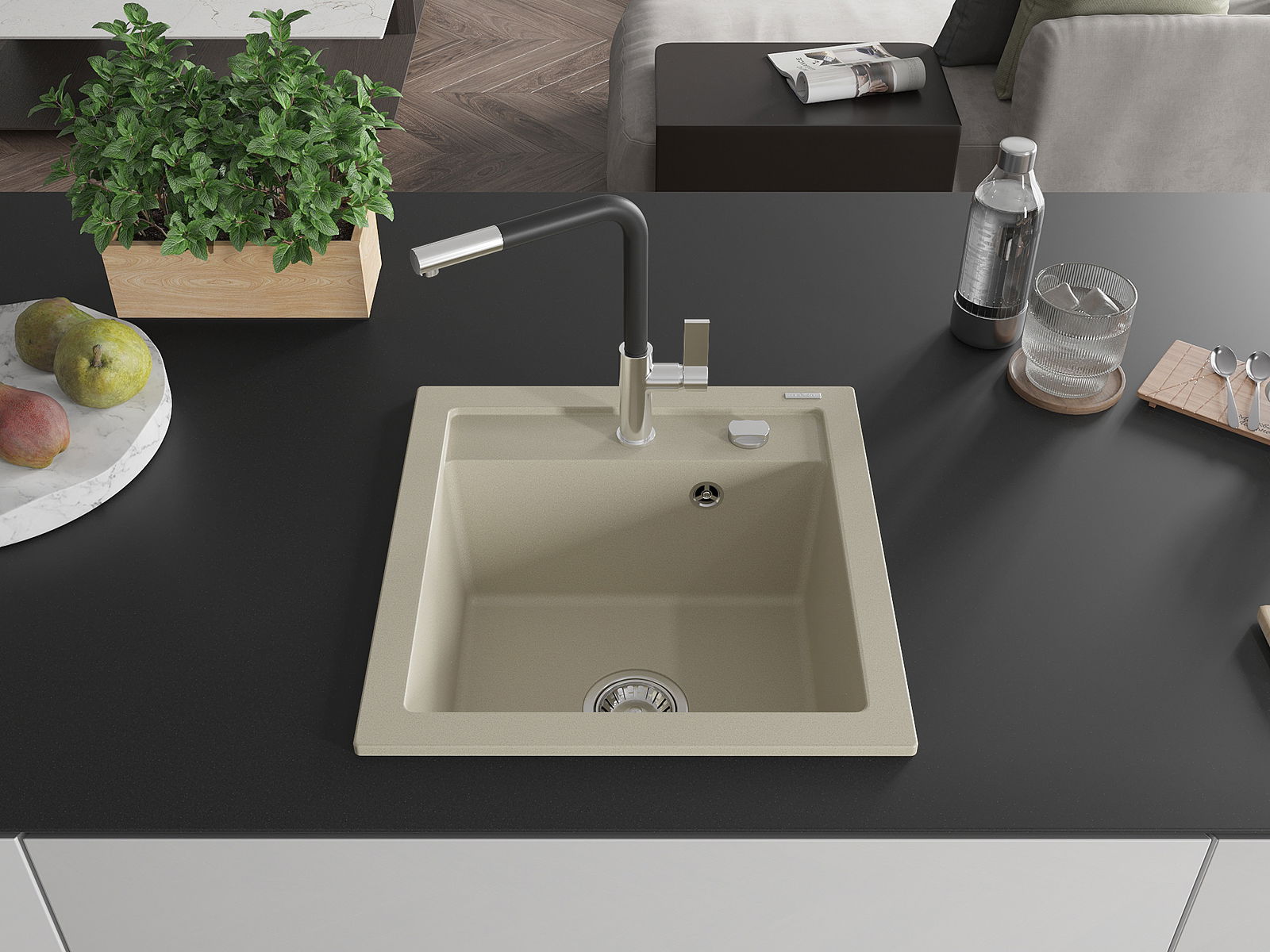 Zlewozmywak został wykonany z wysokiej jakości granitu. Stanowi eleganckie, a przede wszystkim praktyczne uzupełnienie każdej kuchni, niezależnie od jej stylu. Wysoka jakość oraz trwałość granitu zapewniają wieloletnie użytkowanie.