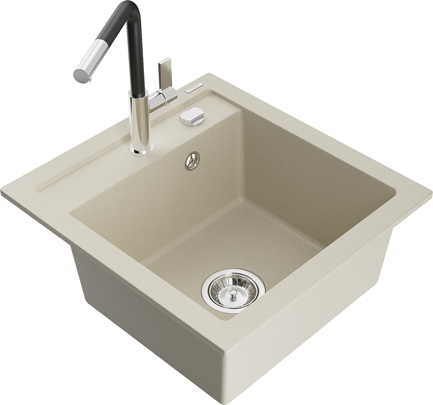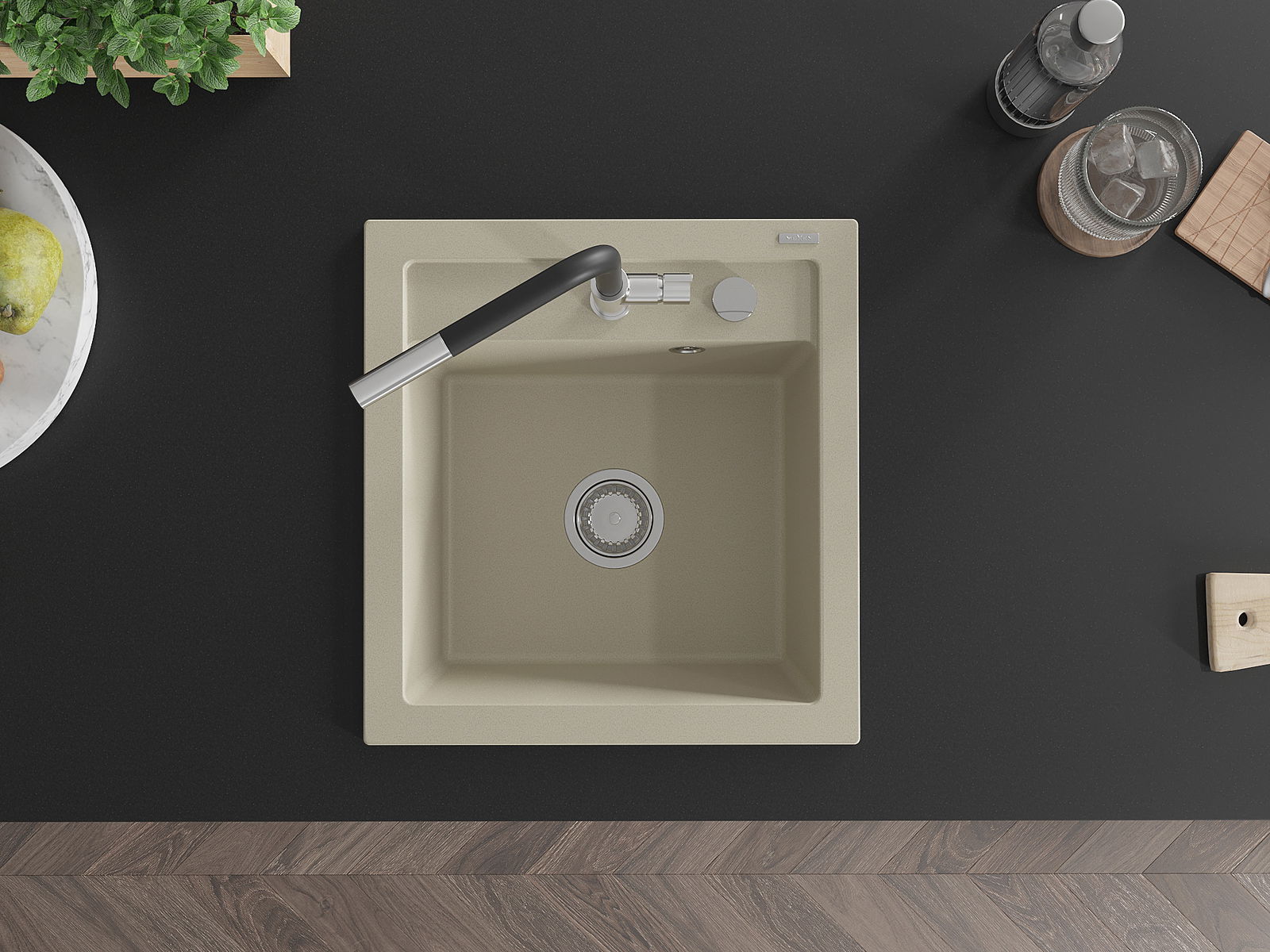 Mexen Vito zlewozmywak granitowy 1-komorowy z baterią kuchenną Flora, beżowy - 6503-69-670401-07