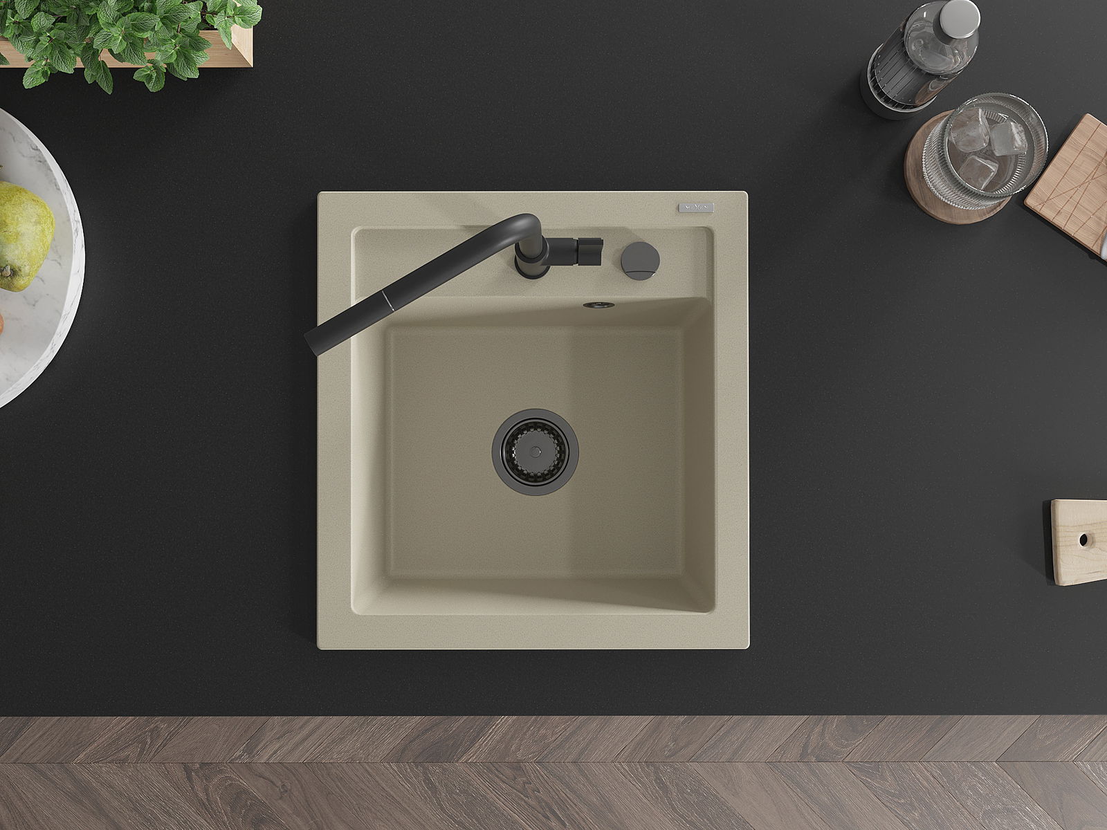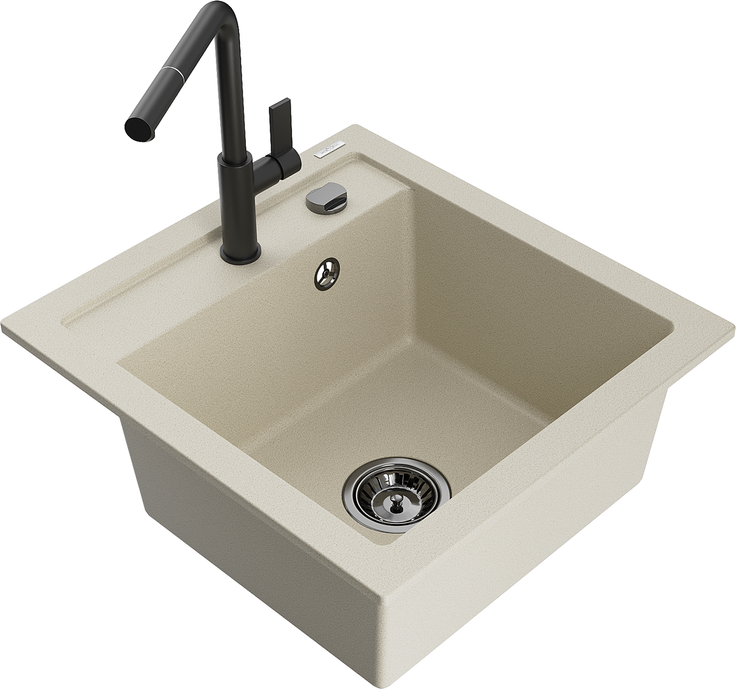 Mexen Vito zlewozmywak granitowy 1-komorowy z baterią kuchenną Flora, beżowy - 6503-69-670401-70-B