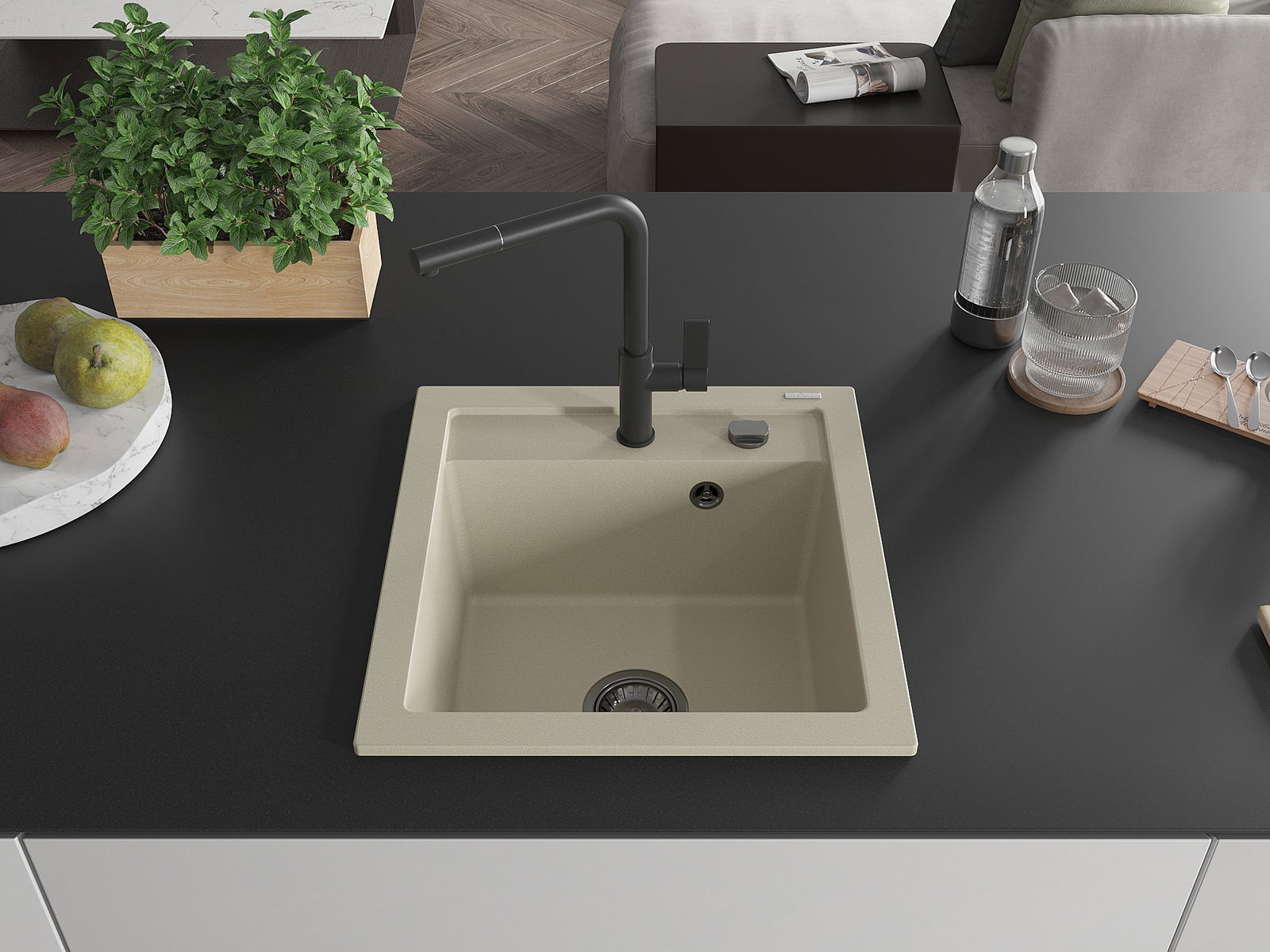 Zlewozmywak został wykonany z wysokiej jakości granitu. Stanowi eleganckie, a przede wszystkim praktyczne uzupełnienie każdej kuchni, niezależnie od jej stylu. Wysoka jakość oraz trwałość granitu zapewniają wieloletnie użytkowanie.