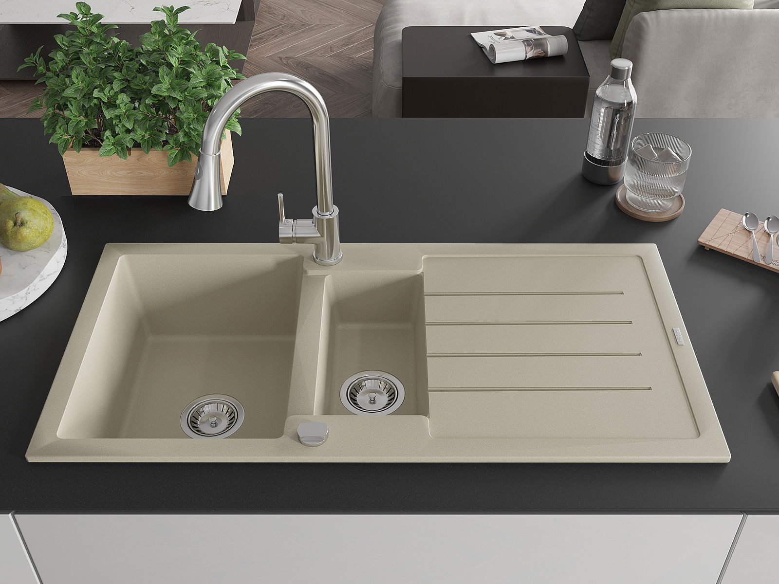 Zlewozmywak został wykonany z wysokiej jakości granitu. Stanowi eleganckie, a przede wszystkim praktyczne uzupełnienie każdej kuchni, niezależnie od jej stylu. Wysoka jakość oraz trwałość granitu zapewniają wieloletnie użytkowanie.