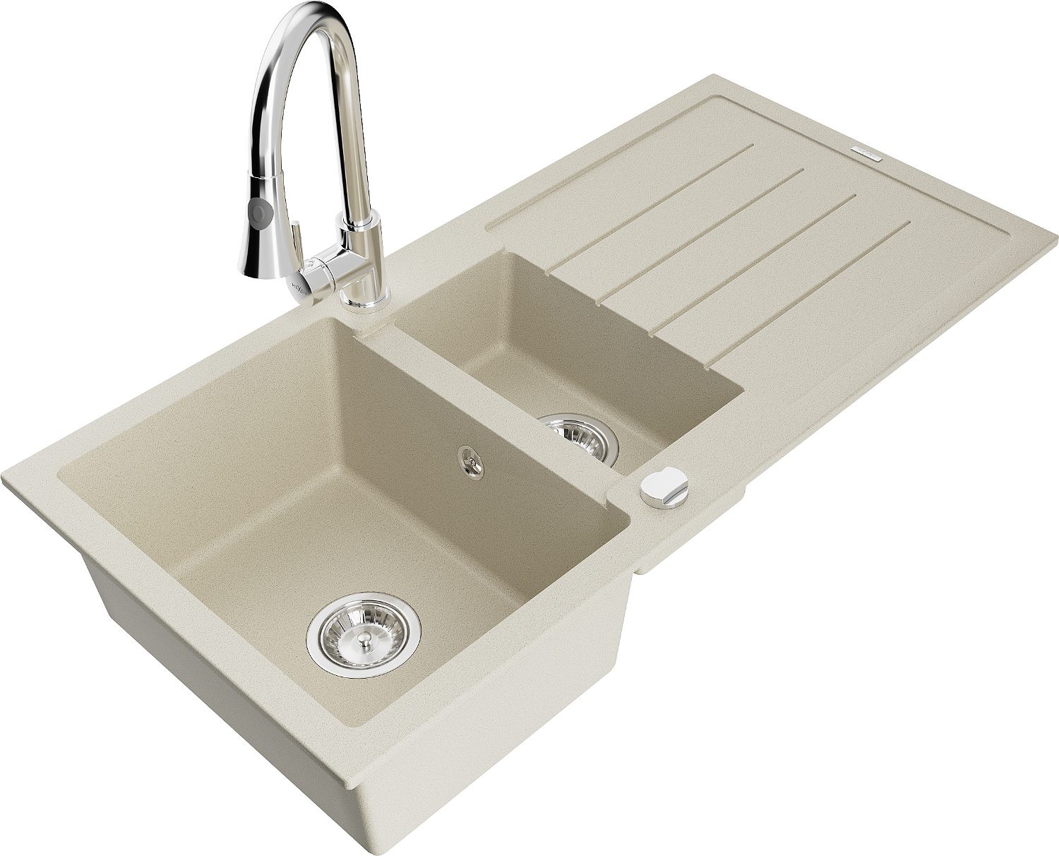Mexen Andres zlewozmywak granitowy 1,5-komorowy z ociekaczem i baterią kuchenną Elia, beżowy - 6515-69-670101-00