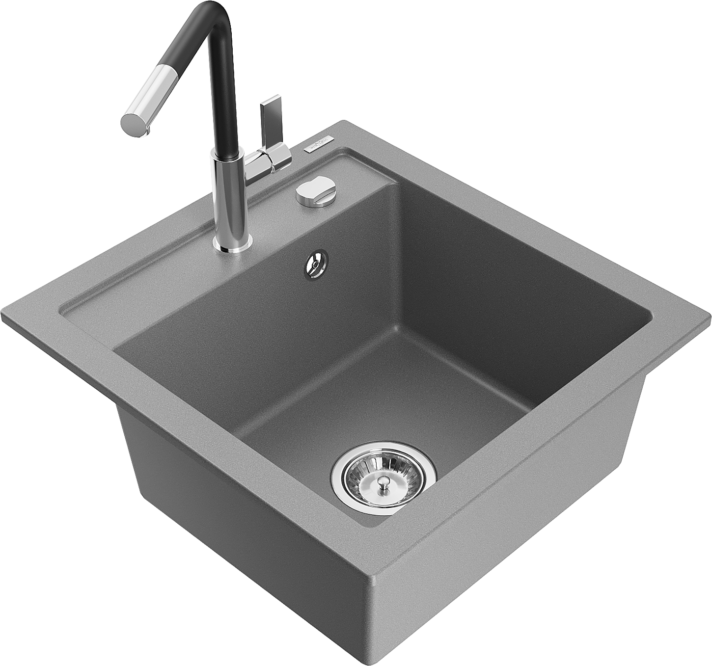 Mexen Vito zlewozmywak granitowy 1-komorowy z baterią kuchenną Flora, szary - 6503-71-670401-07