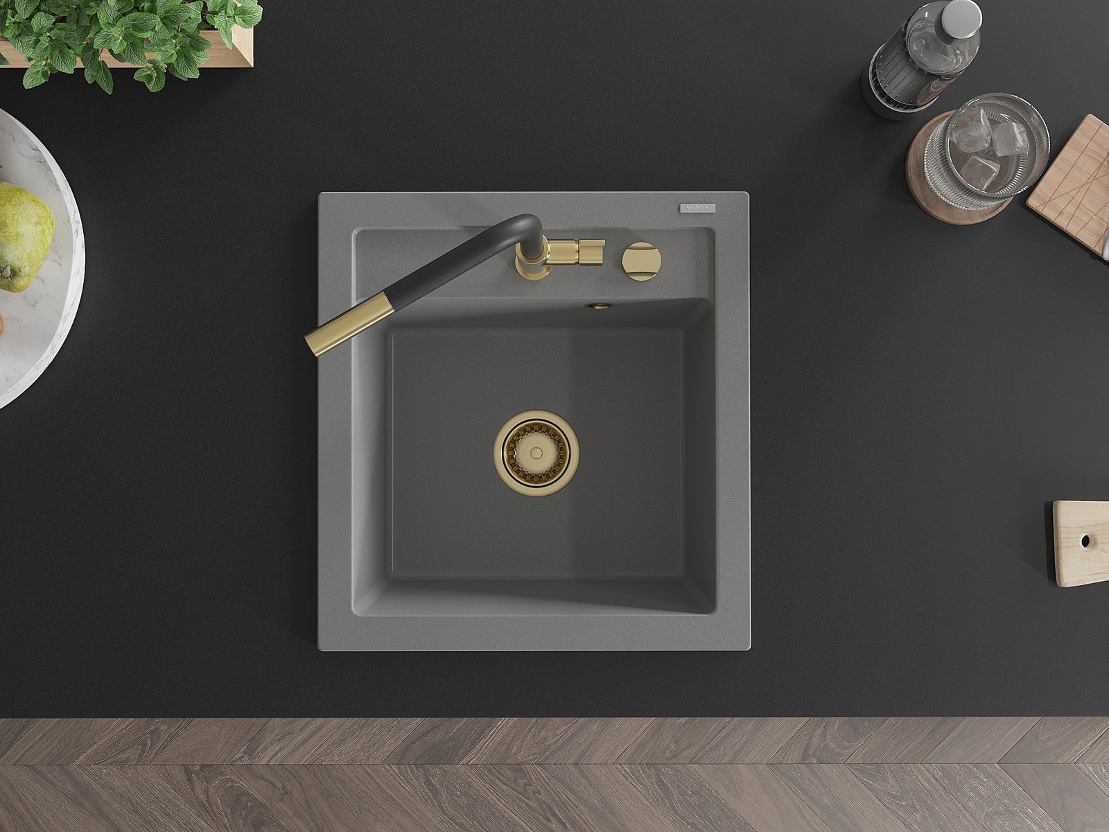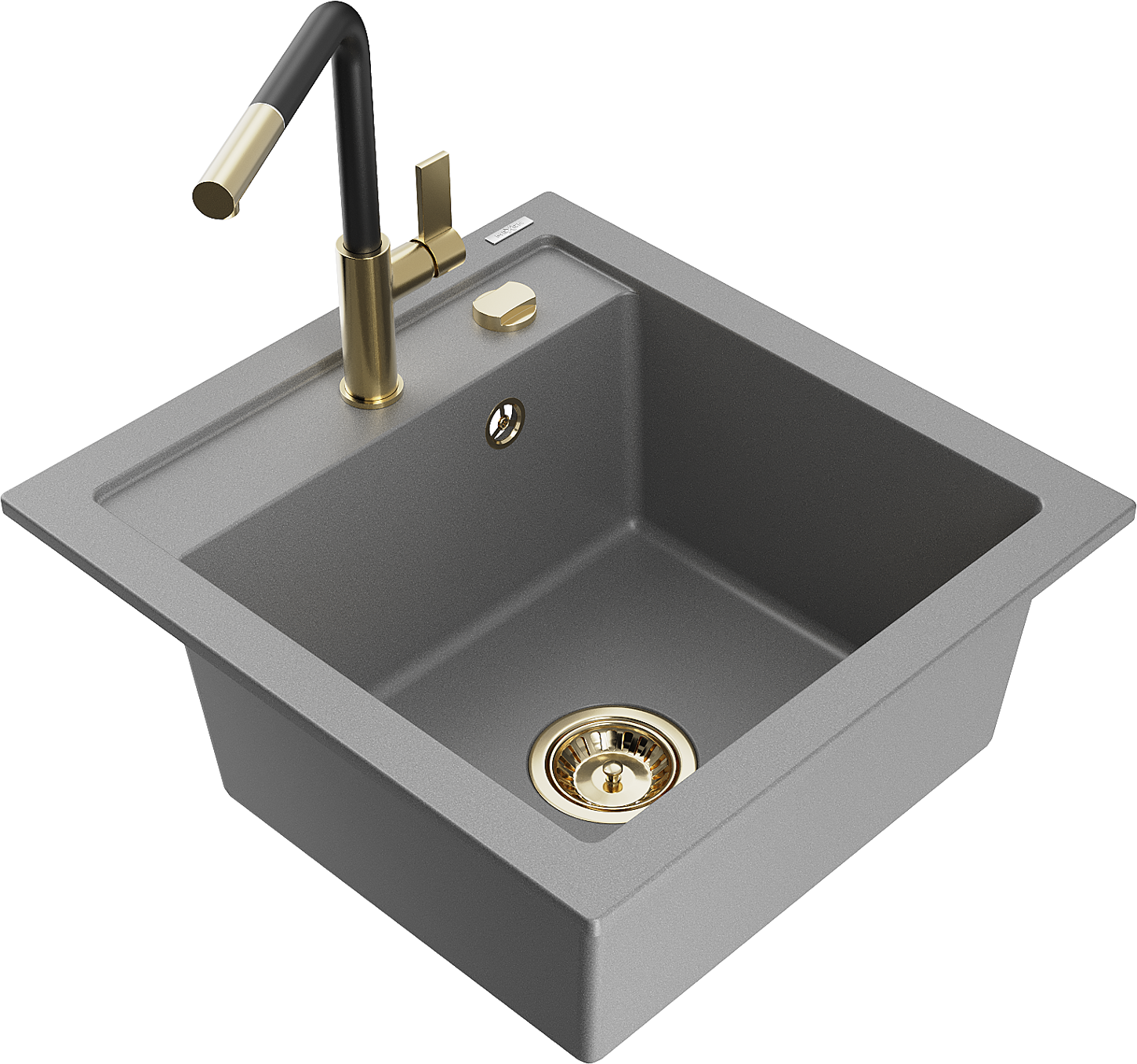 Mexen Vito zlewozmywak granitowy 1-komorowy z baterią kuchenną Flora, szary - 6503-71-670401-57-G