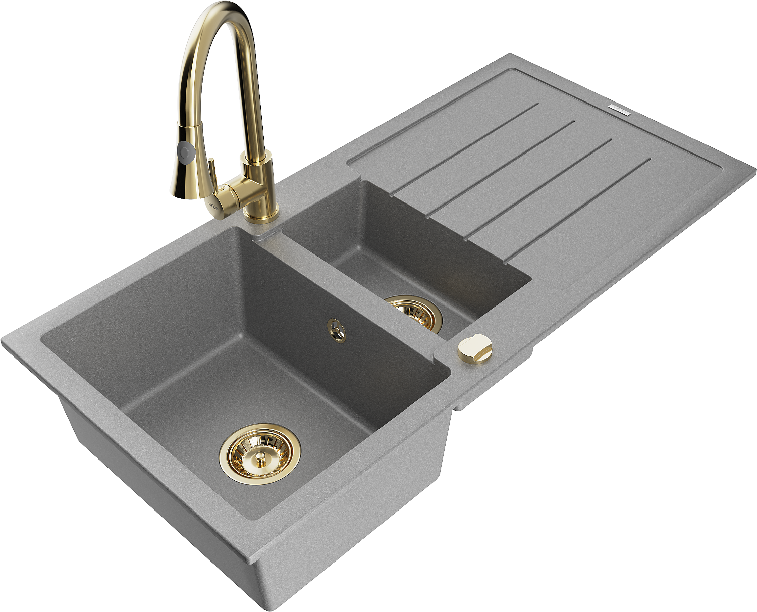Mexen Andres zlewozmywak granitowy 1,5-komorowy z ociekaczem i baterią kuchenną Elia, szary - 6515-71-670101-50