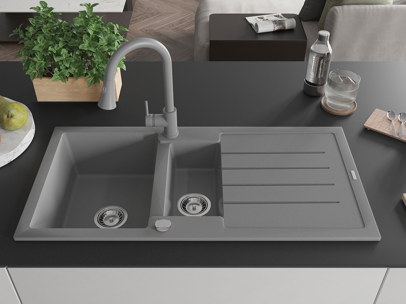 Zlewozmywak został wykonany z wysokiej jakości granitu. Stanowi eleganckie, a przede wszystkim praktyczne uzupełnienie każdej kuchni, niezależnie od jej stylu. Wysoka jakość oraz trwałość granitu zapewniają wieloletnie użytkowanie.