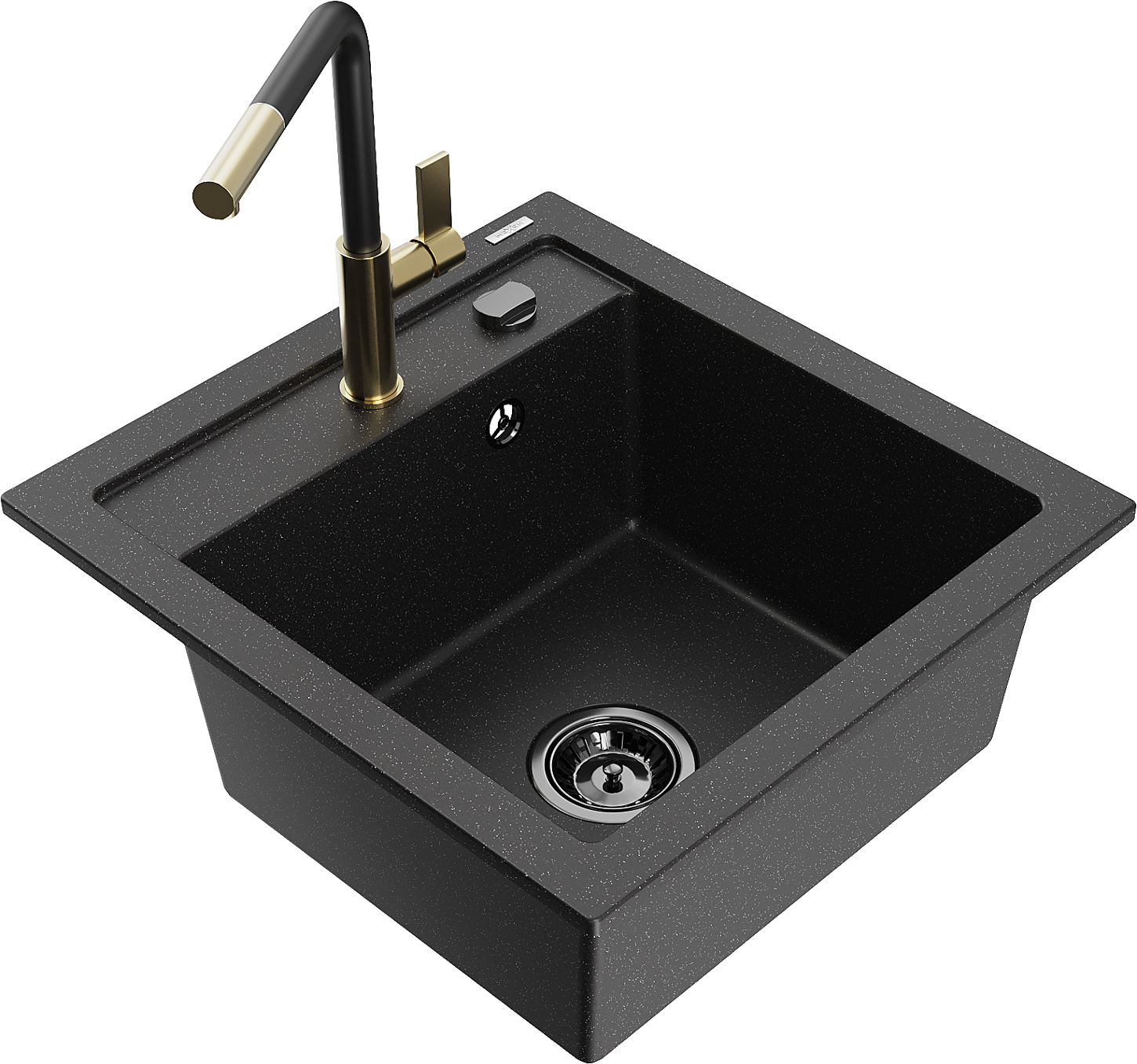 Mexen Vito zlewozmywak granitowy 1-komorowy z baterią kuchenną Flora, czarny/srebrny metalik - 6503-73-670401-57-B