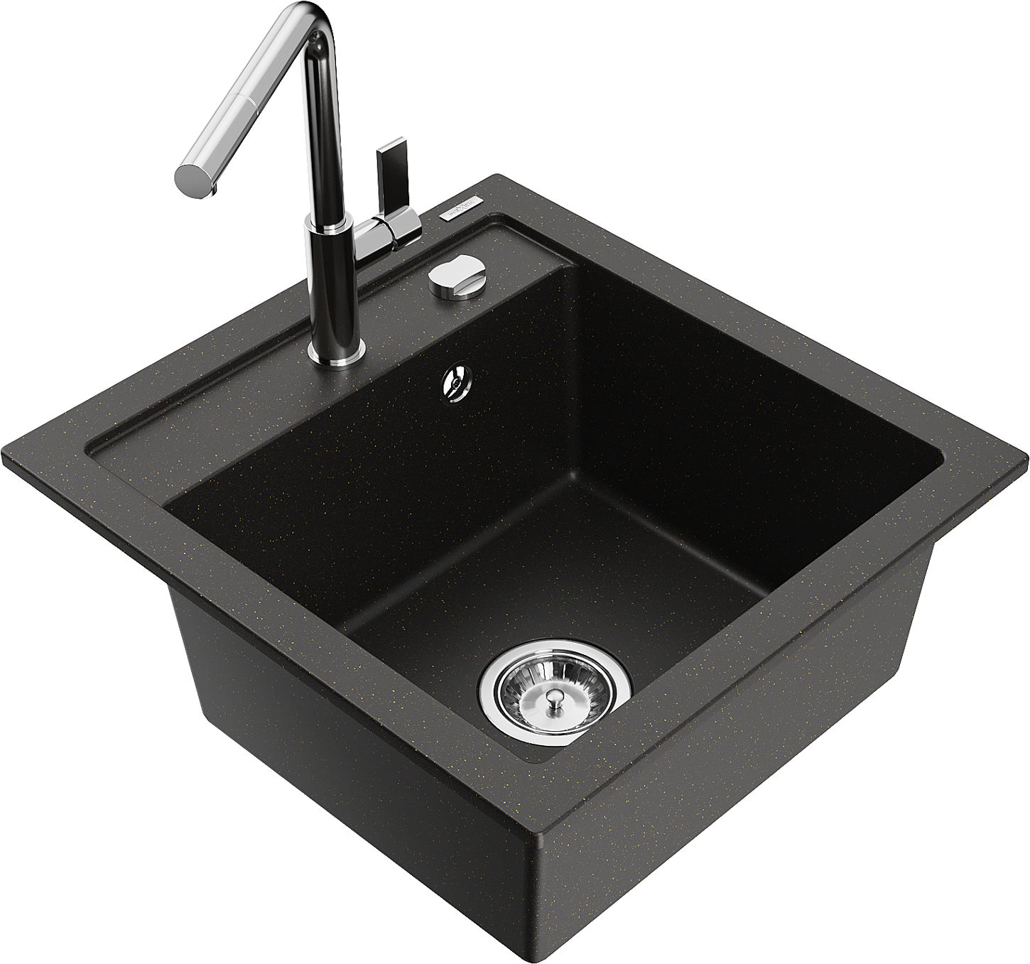 Mexen Vito zlewozmywak granitowy 1-komorowy z baterią kuchenną Flora, czarny/złoty metalik - 6503-75-670401-00