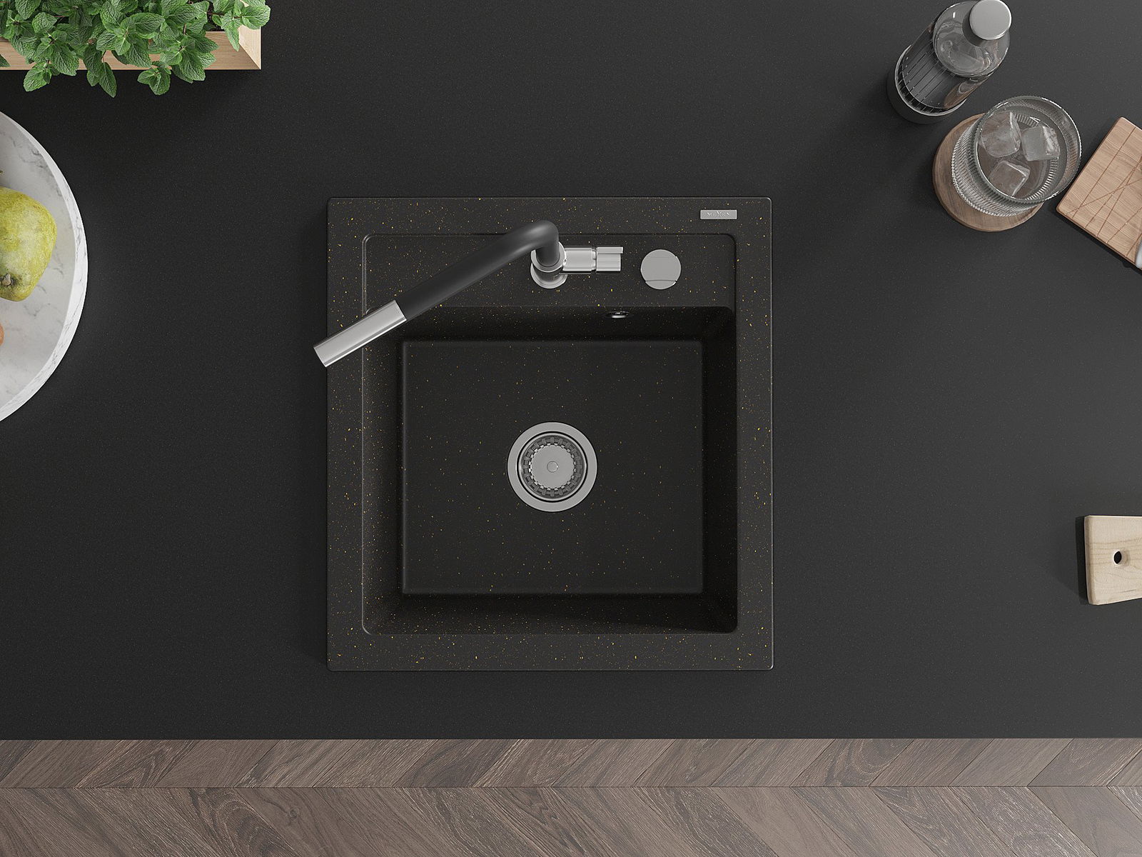 Zlew posiada podfrezowany otwór o średnicy 35 mm do samodzielnego wybicia. Można go wykorzystać m.in. do montażu dozownika na płyn, który wyeliminuje obecność plastikowych butelek w kuchni i nada jej eleganckiego wykończenia.