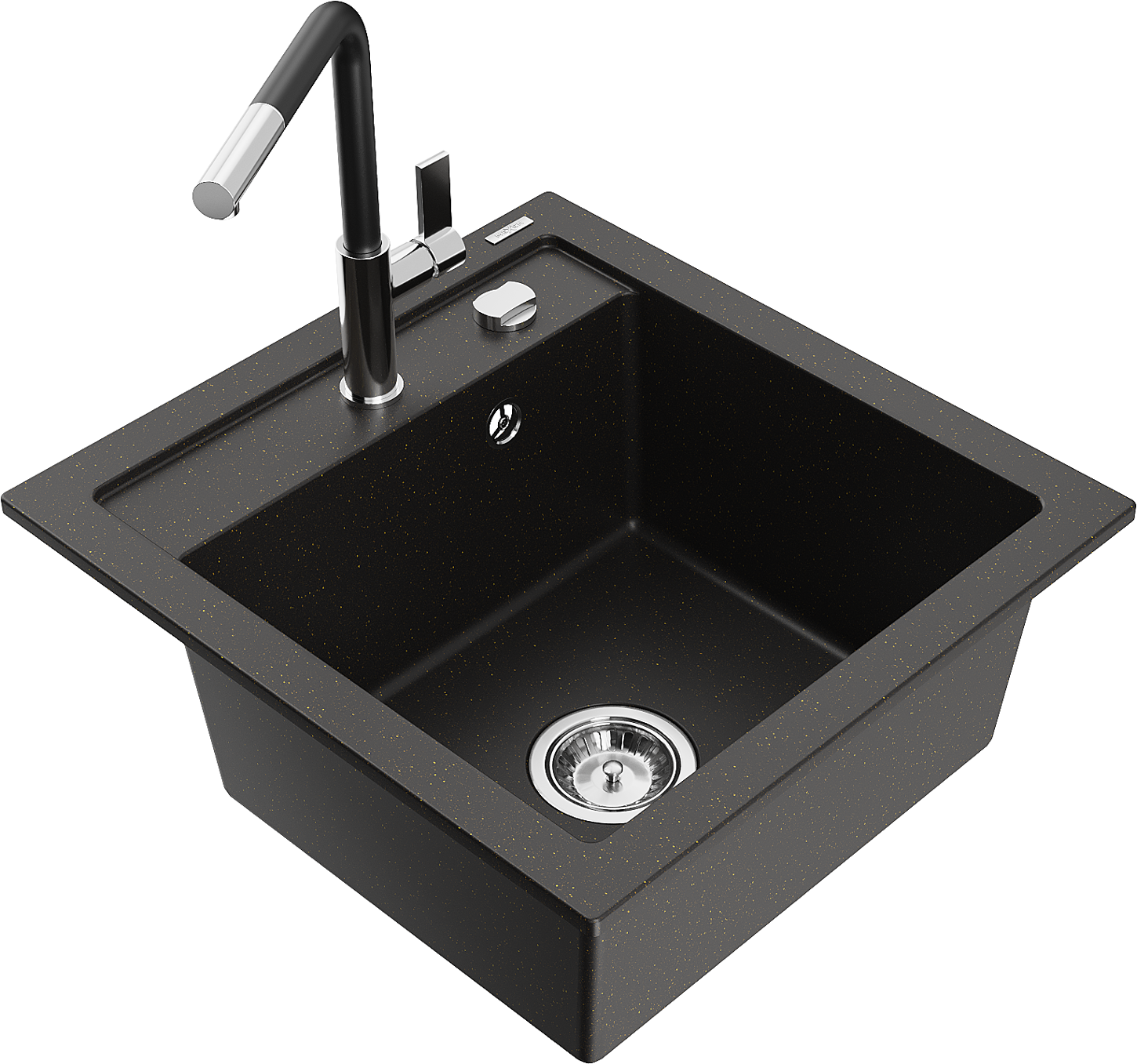 Mexen Vito zlewozmywak granitowy 1-komorowy z baterią kuchenną Flora, czarny/złoty metalik - 6503-75-670401-07