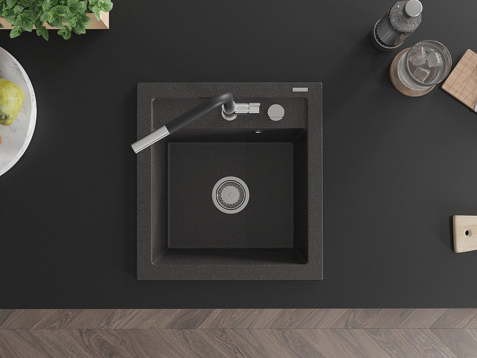 Zlew posiada podfrezowany otwór o średnicy 35 mm do samodzielnego wybicia. Można go wykorzystać m.in. do montażu dozownika na płyn, który wyeliminuje obecność plastikowych butelek w kuchni i nada jej eleganckiego wykończenia.