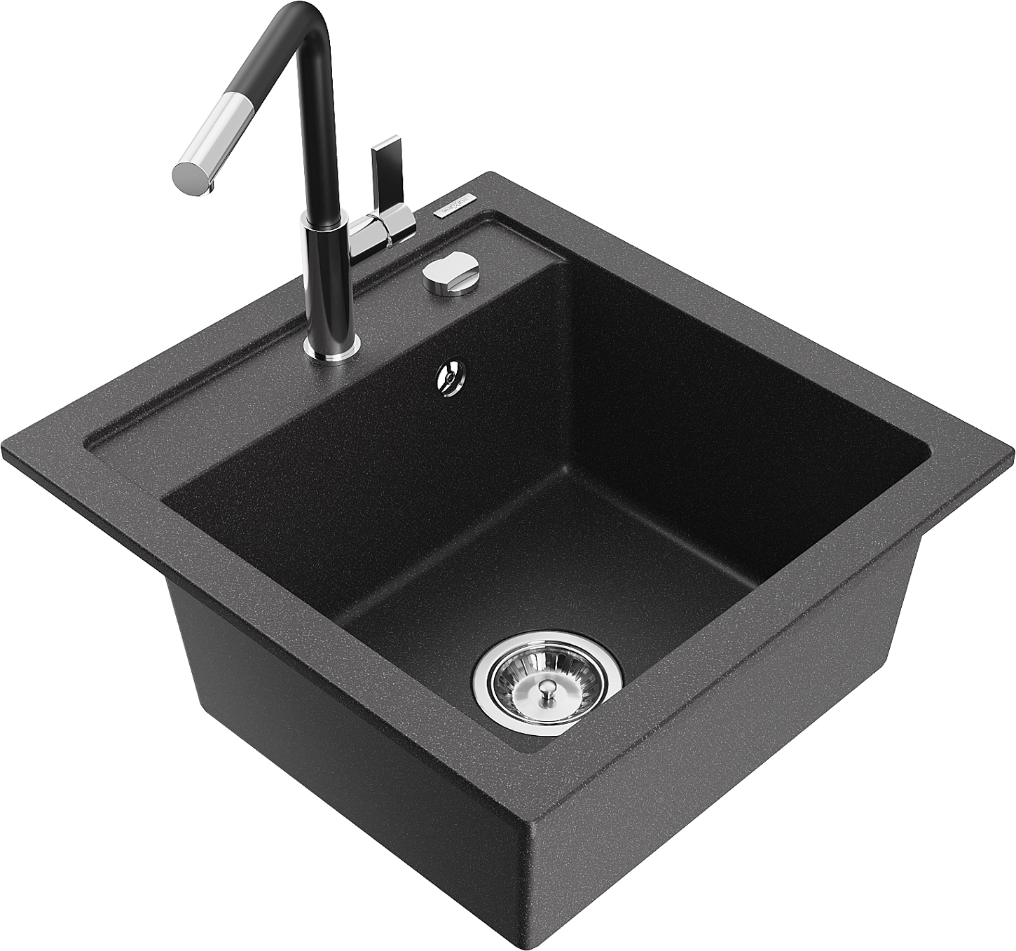 Mexen Vito zlewozmywak granitowy 1-komorowy z baterią kuchenną Flora, czarny nakrapiany - 6503-76-670401-07