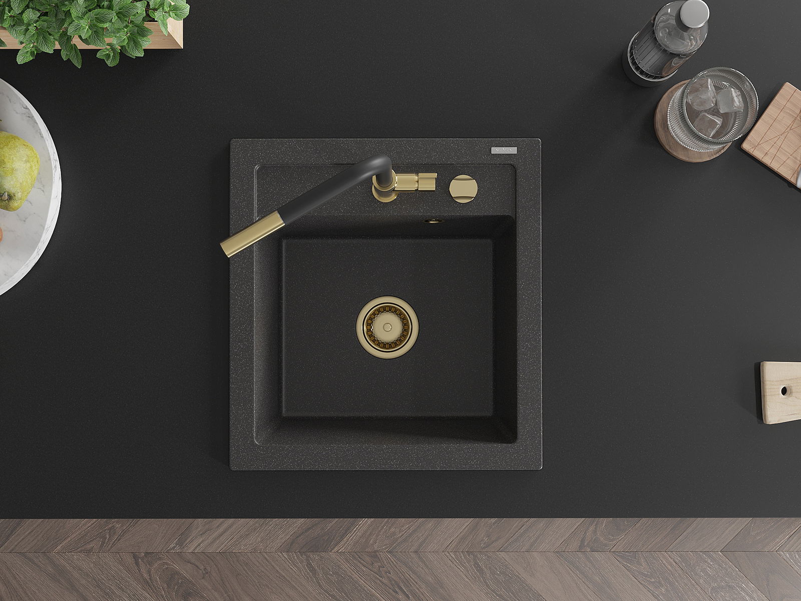 Mexen Vito zlewozmywak granitowy 1-komorowy z baterią kuchenną Flora, czarny nakrapiany - 6503-76-670401-57-G