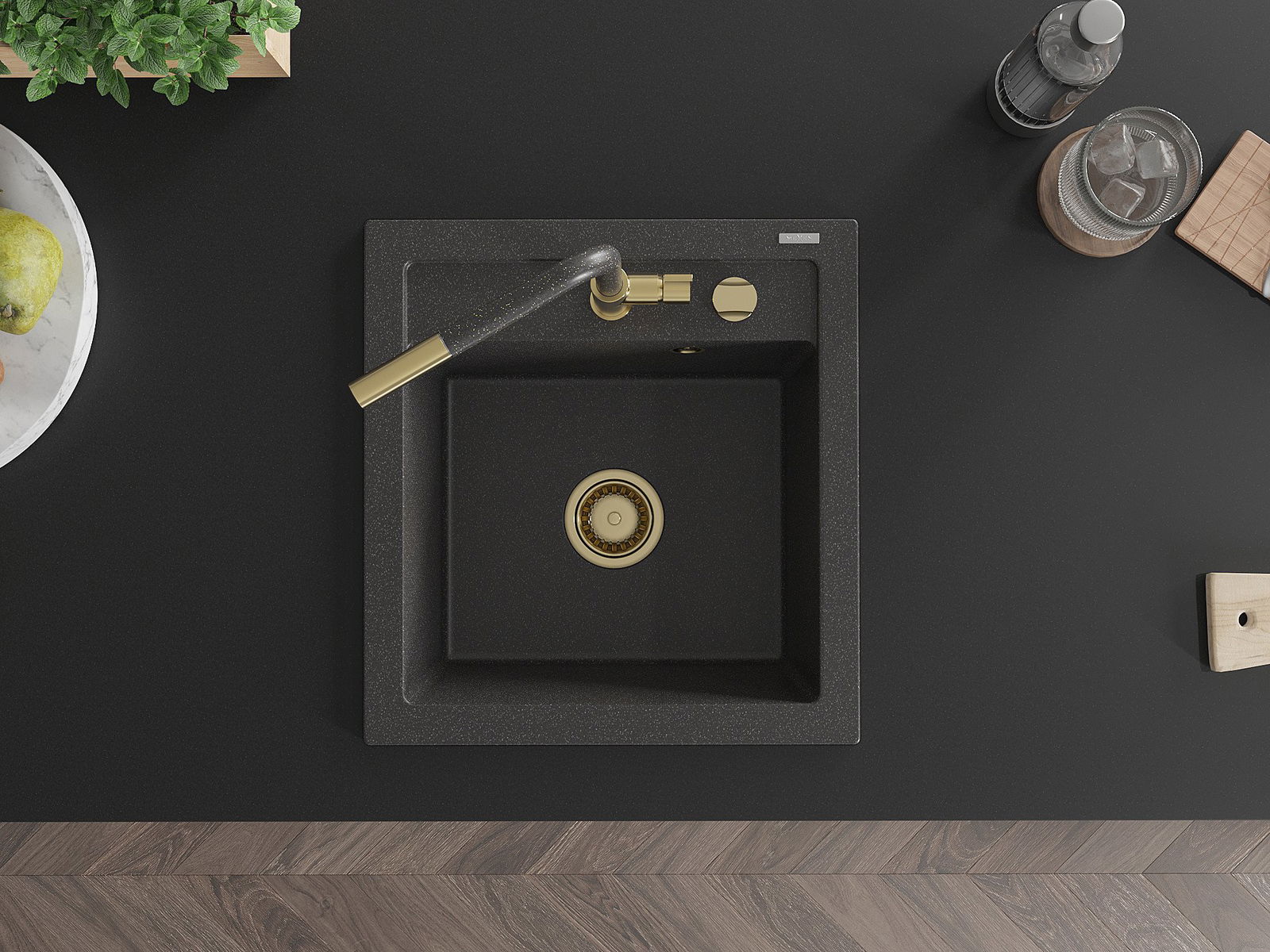 Zlew posiada podfrezowany otwór o średnicy 35 mm do samodzielnego wybicia. Można go wykorzystać m.in. do montażu dozownika na płyn, który wyeliminuje obecność plastikowych butelek w kuchni i nada jej eleganckiego wykończenia.