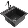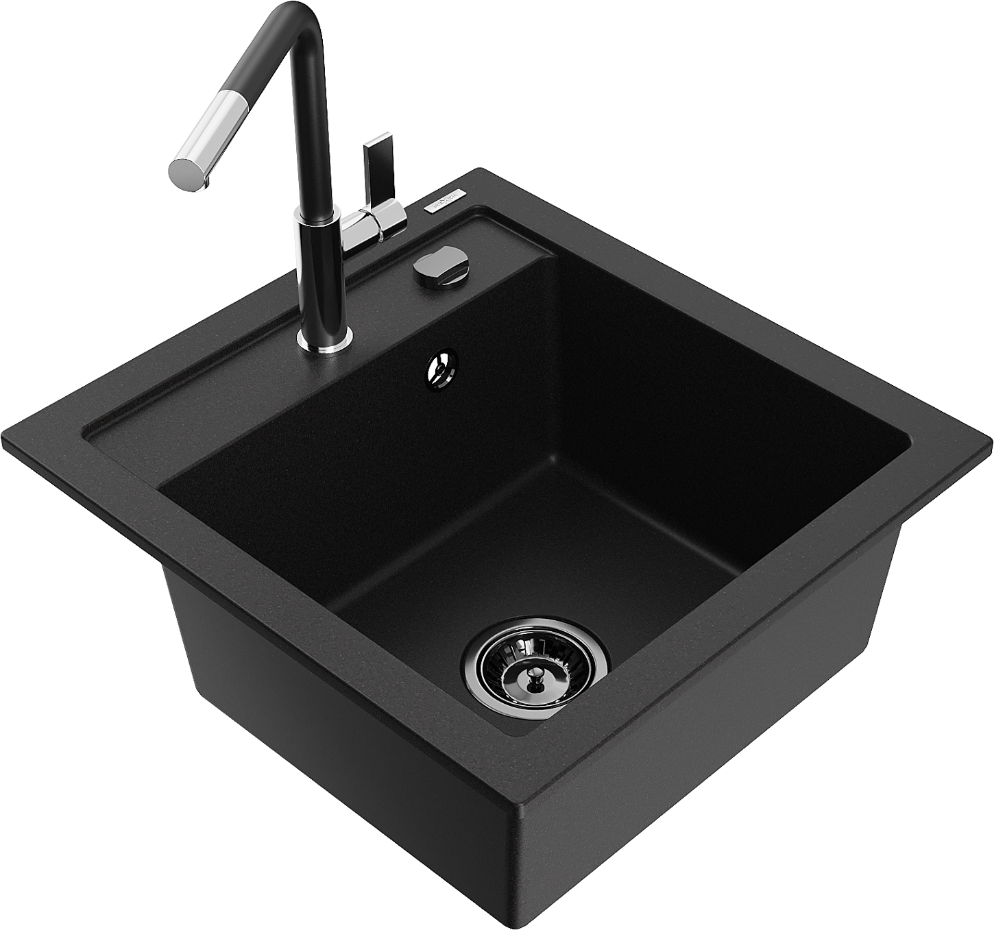 Mexen Vito zlewozmywak granitowy 1-komorowy z baterią kuchenną Flora, czarny - 6503-77-670401-07-B