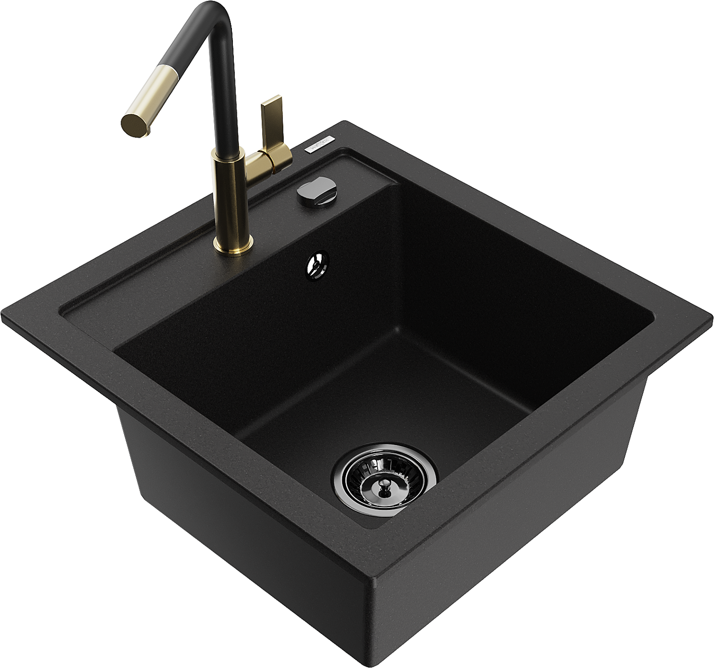 Mexen Vito zlewozmywak granitowy 1-komorowy z baterią kuchenną Flora, czarny - 6503-77-670401-57-B