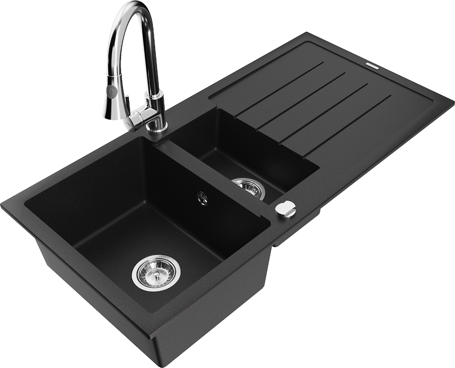 Mexen Andres zlewozmywak granitowy 1,5-komorowy z ociekaczem i baterią kuchenną Elia, czarny - 6515-77-670101-00