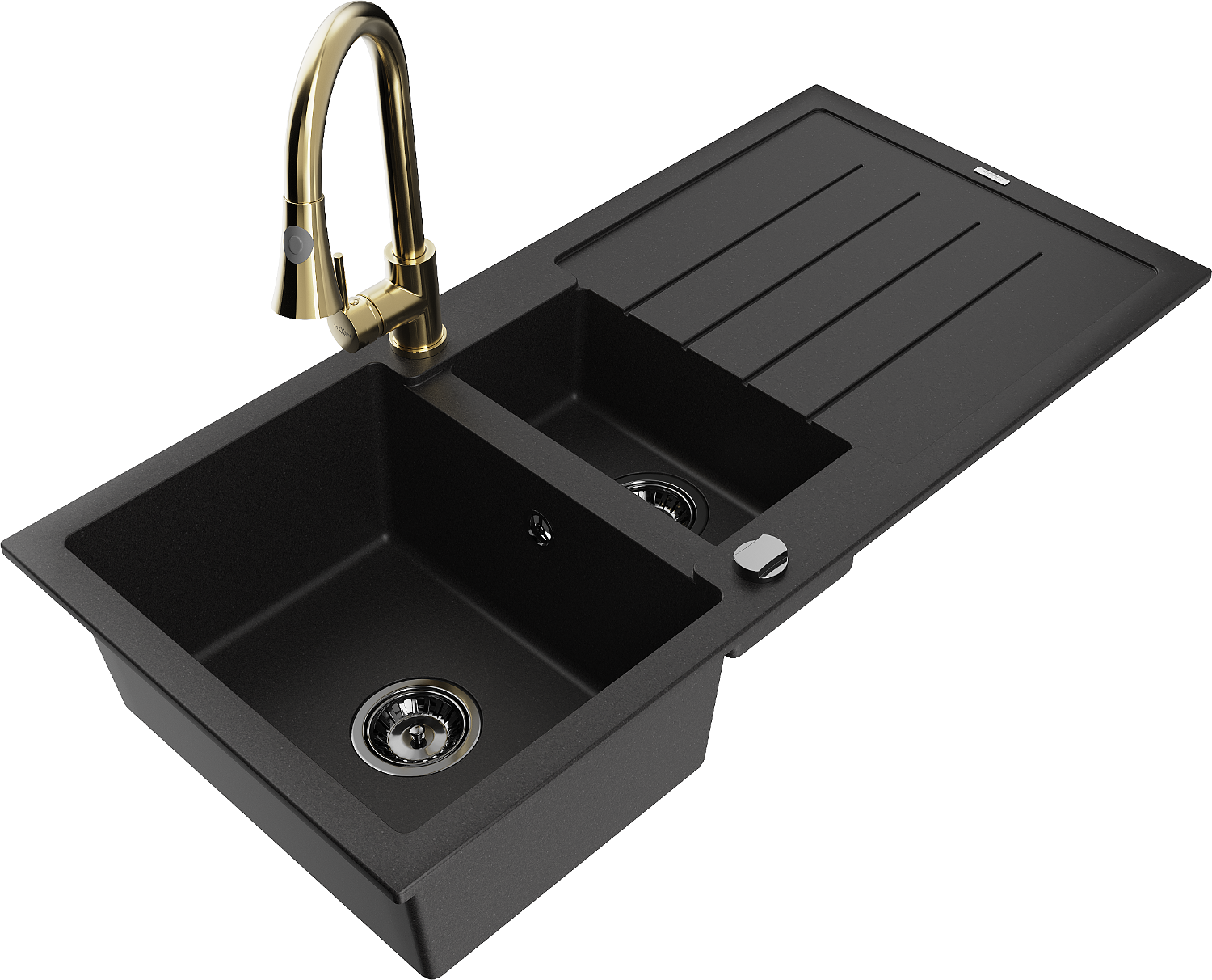 Mexen Andres zlewozmywak granitowy 1,5-komorowy z ociekaczem i baterią kuchenną Elia, czarny - 6515-77-670101-50-B