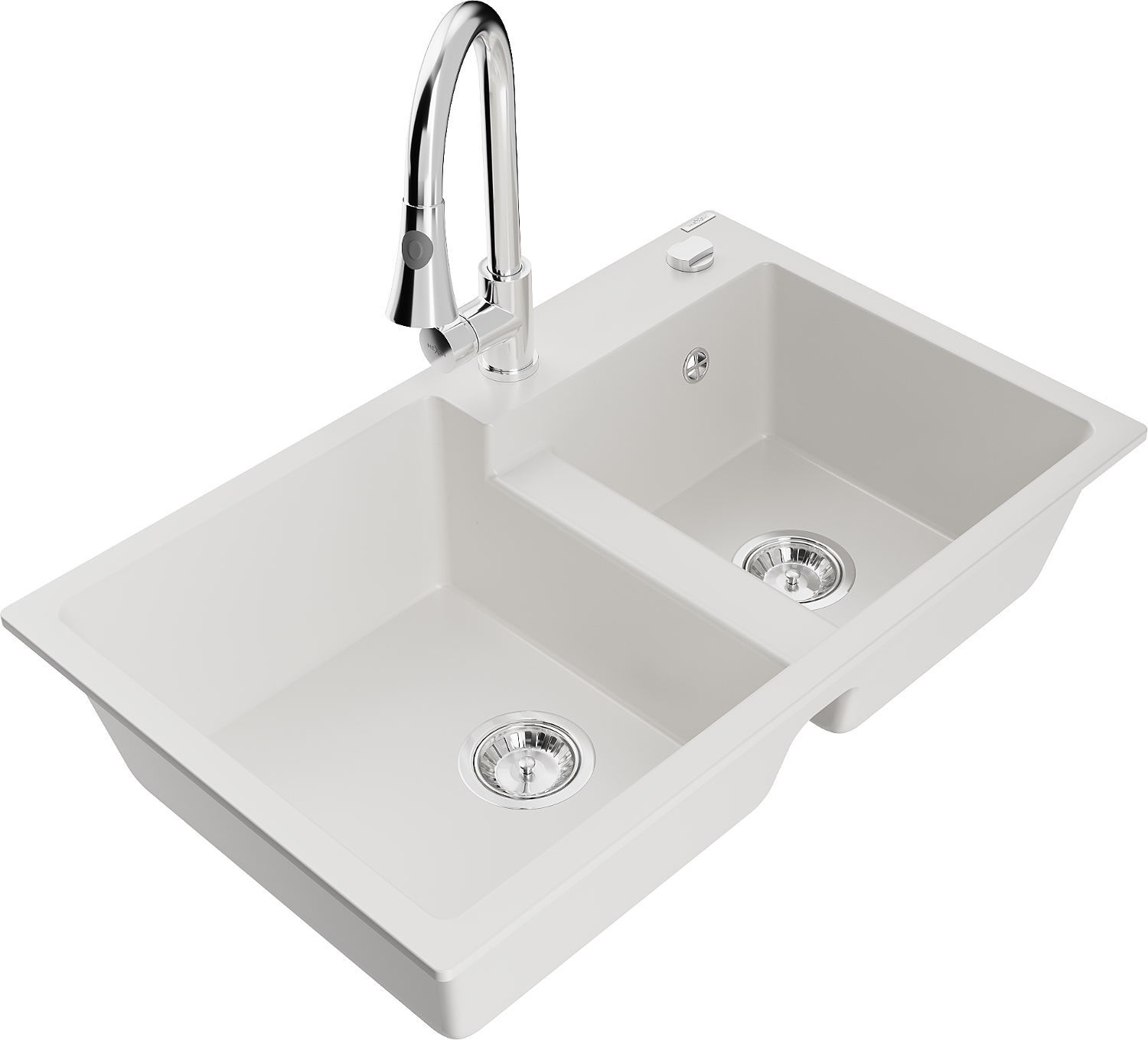 Mexen Tomas zlewozmywak granitowy 2-komorowy z baterią kuchenną Elia, biały - 6516-20-670101-00