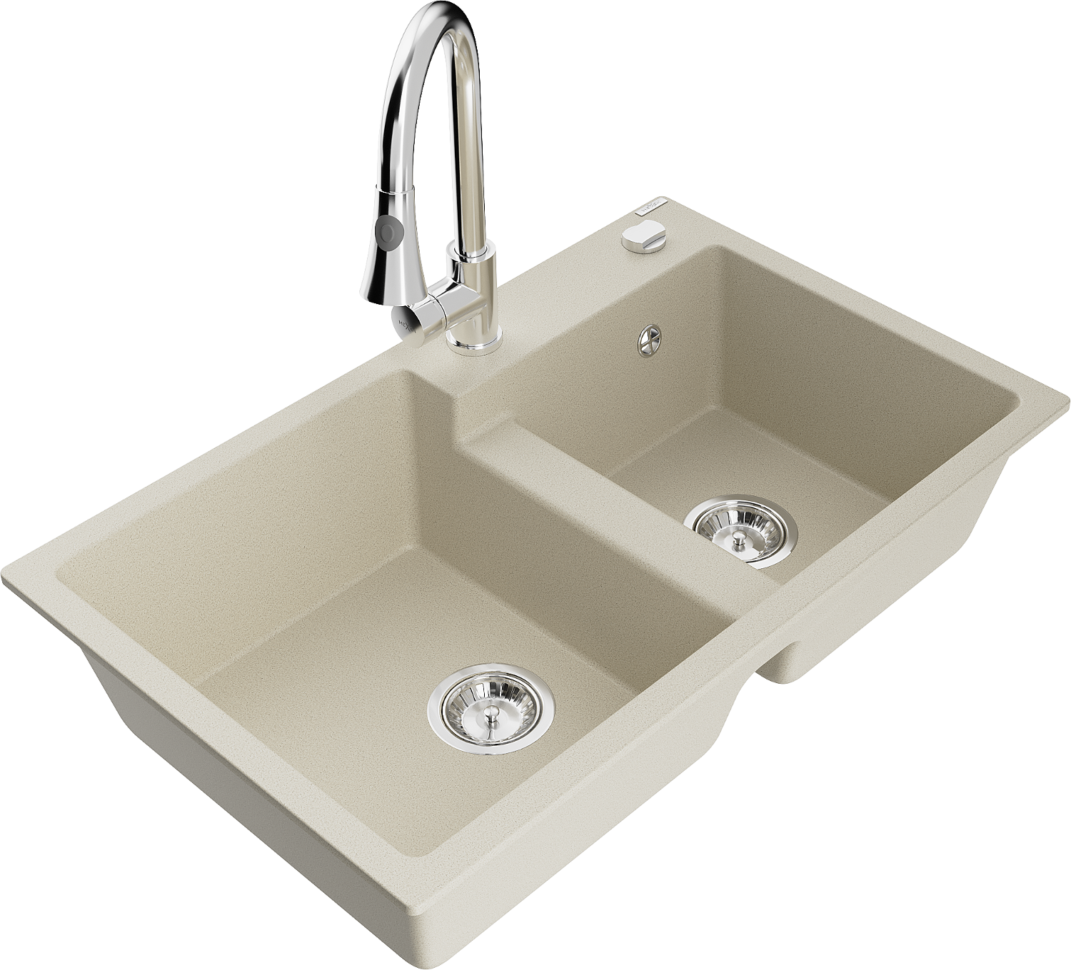 Mexen Tomas zlewozmywak granitowy 2-komorowy z baterią kuchenną Elia, beżowy - 6516-69-670101-00
