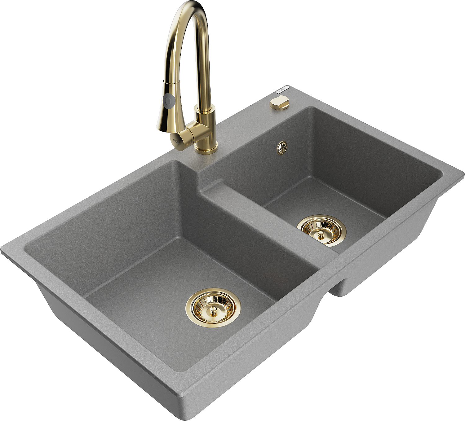 Mexen Tomas zlewozmywak granitowy 2-komorowy z baterią kuchenną Elia, szary - 6516-71-670101-50