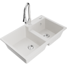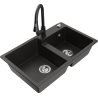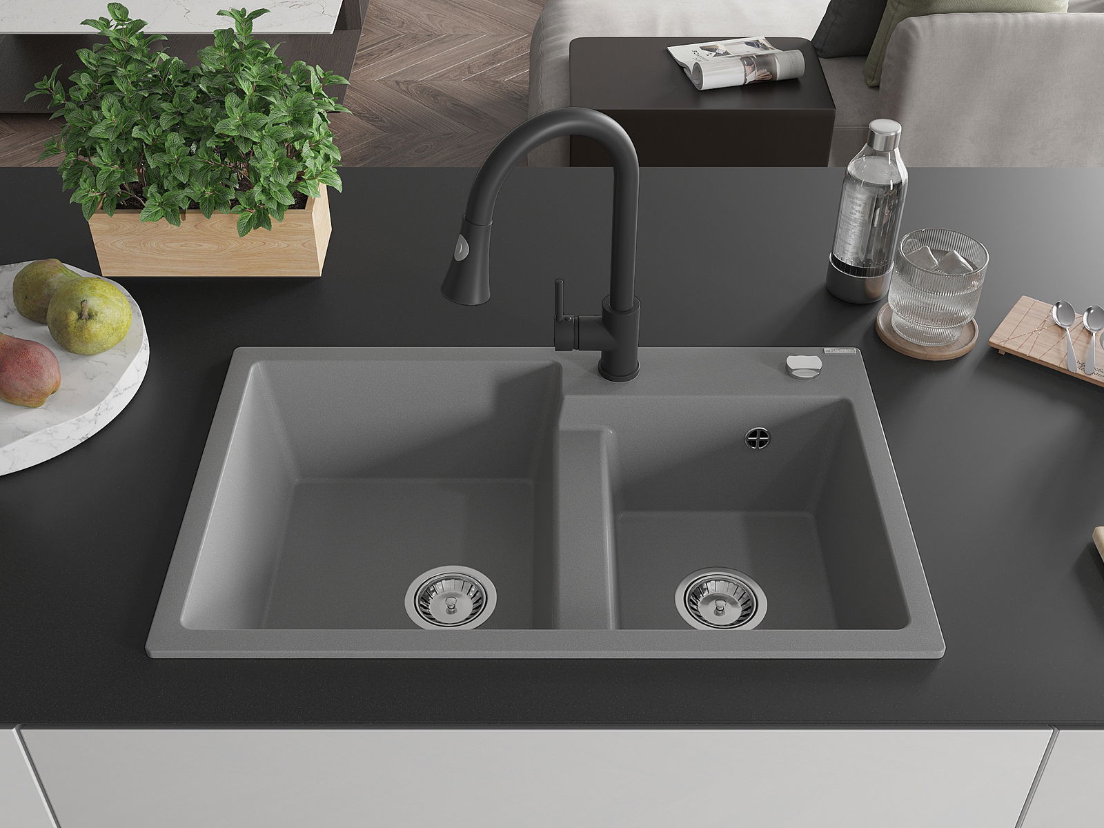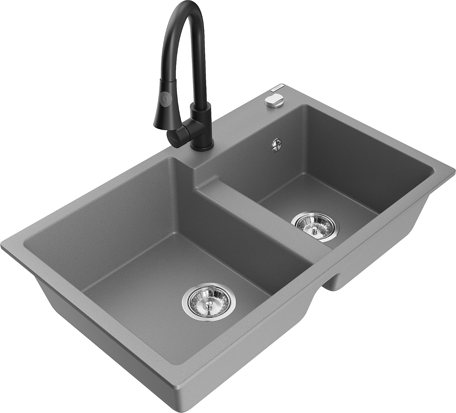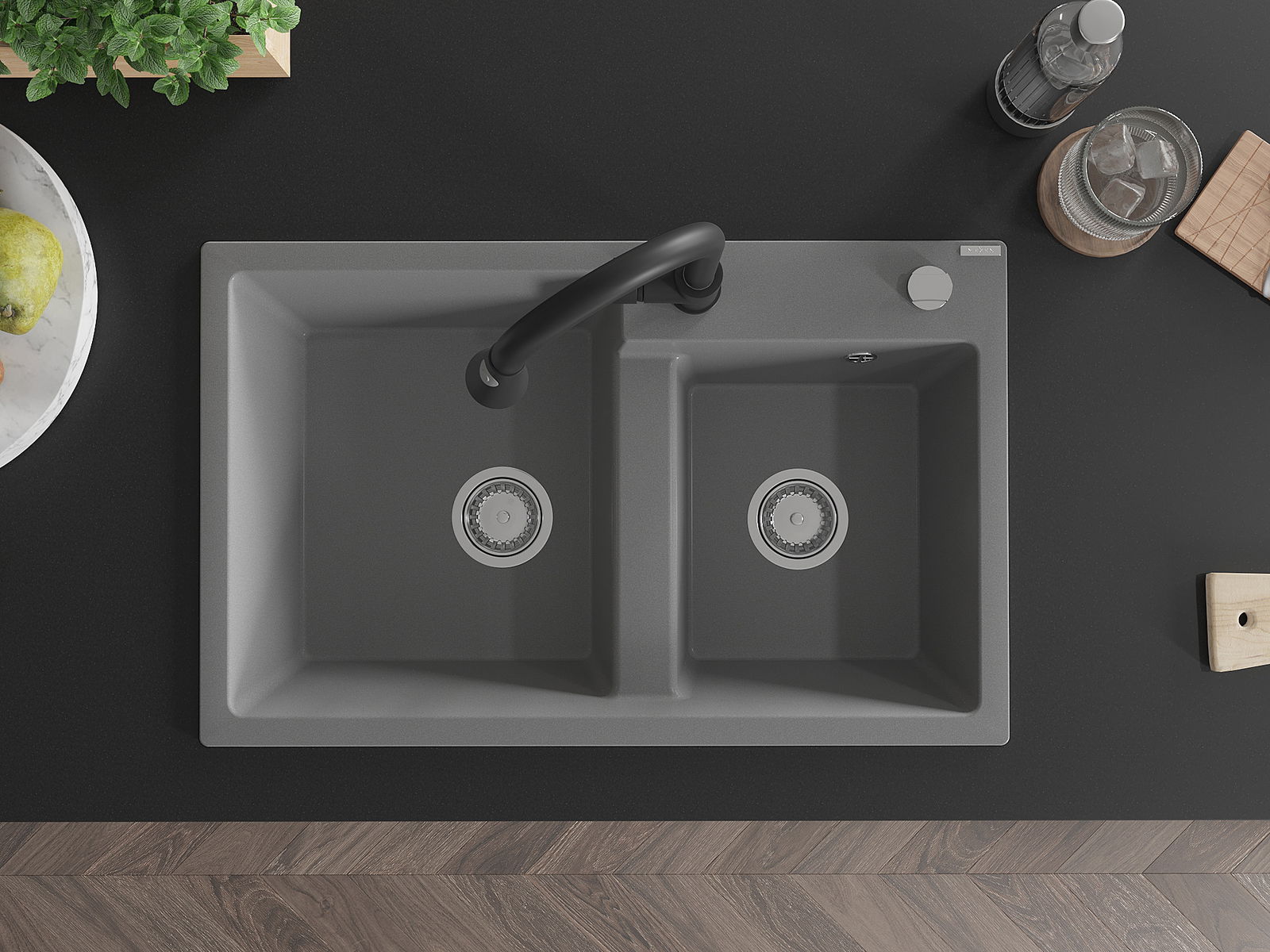 Mexen Tomas zlewozmywak granitowy 2-komorowy z baterią kuchenną Elia, szary - 6516-71-670101-70