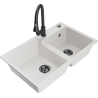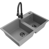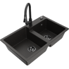 Mexen Tomas zlewozmywak granitowy 2-komorowy z baterią kuchenną Elia, czarny/srebrny metalik - 6516-73-670101-70-B