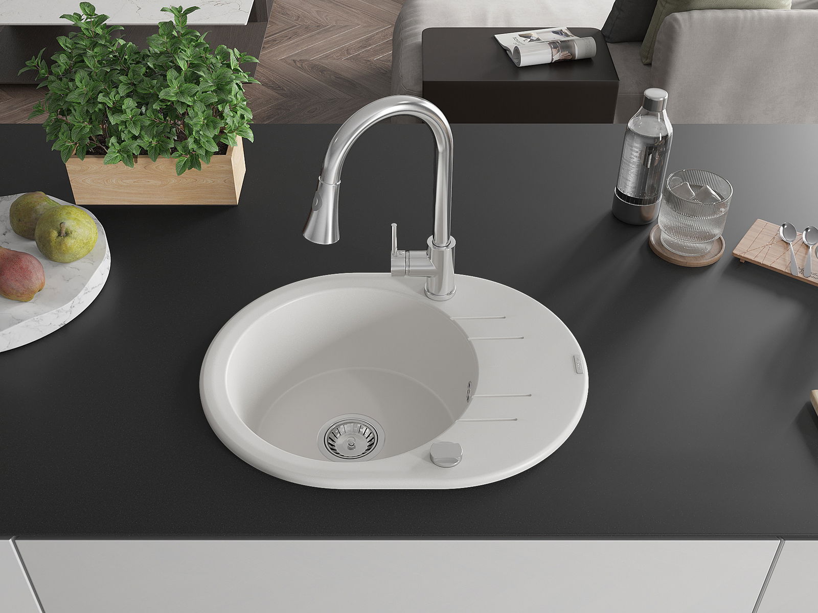 Zlewozmywak został wykonany z wysokiej jakości granitu. Stanowi eleganckie, a przede wszystkim praktyczne uzupełnienie każdej kuchni, niezależnie od jej stylu. Wysoka jakość oraz trwałość granitu zapewniają wieloletnie użytkowanie.