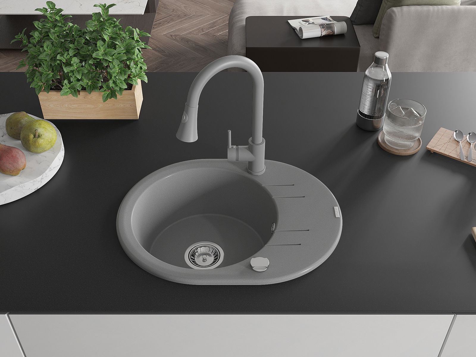 Zlewozmywak został wykonany z wysokiej jakości granitu. Stanowi eleganckie, a przede wszystkim praktyczne uzupełnienie każdej kuchni, niezależnie od jej stylu. Wysoka jakość oraz trwałość granitu zapewniają wieloletnie użytkowanie.