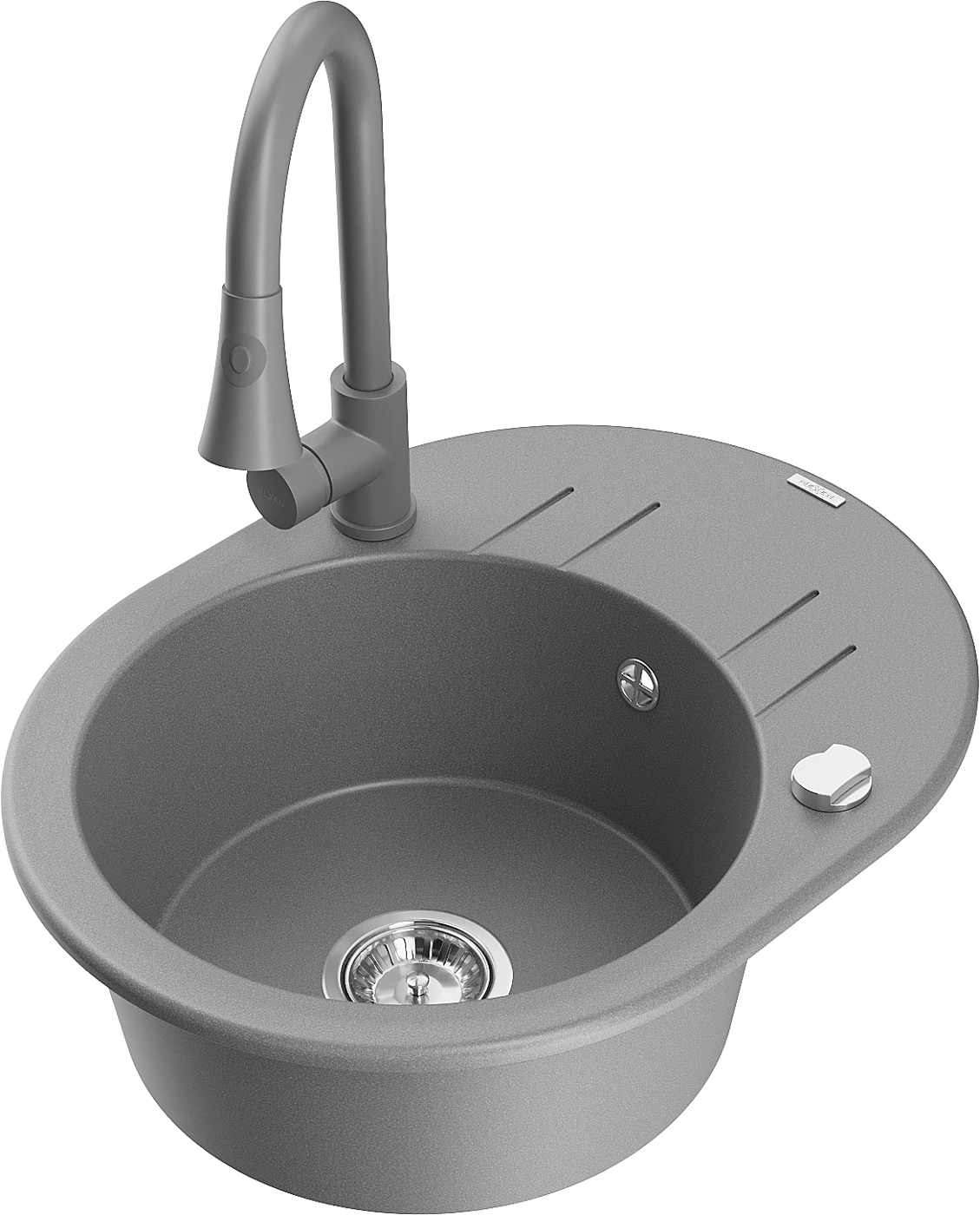 Mexen Kevin zlewozmywak granitowy 1-komorowy z ociekaczem i baterią kuchenną Elia, szary - 6517-71-670101-71