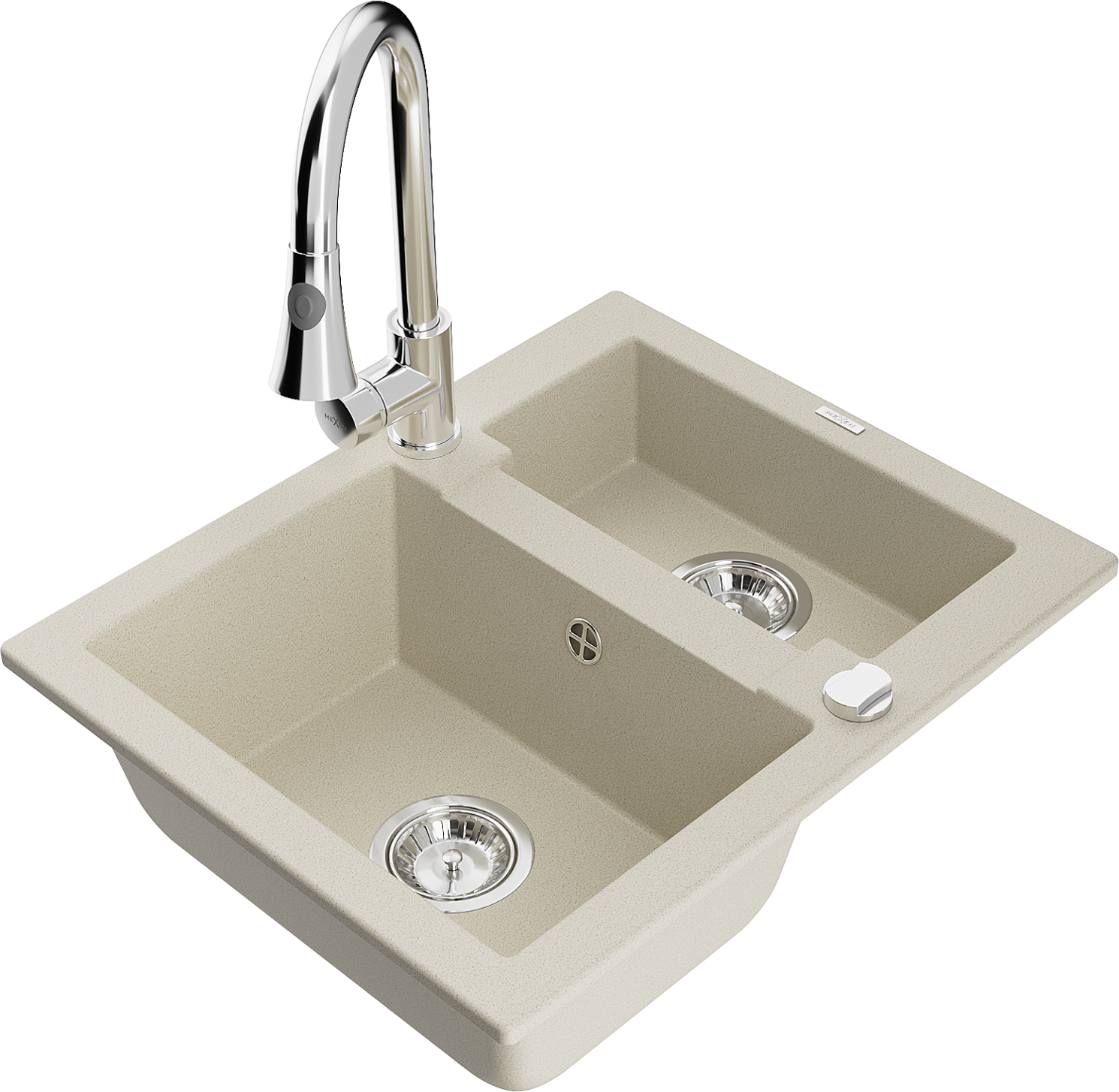 Mexen Carlos zlewozmywak granitowy 1,5-komorowy z baterią kuchenną Elia, beżowy - 6518-69-670101-00
