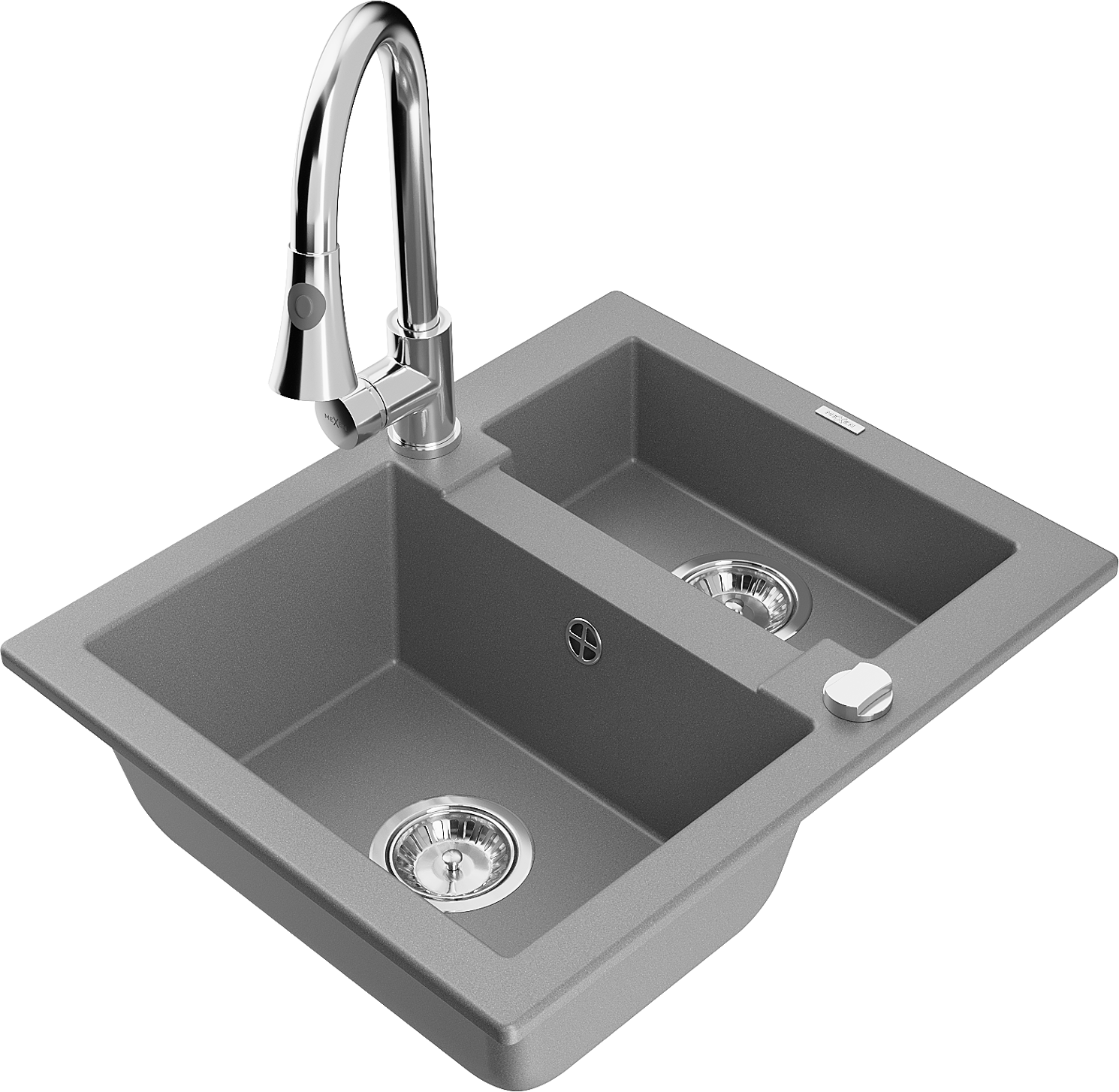 Mexen Carlos zlewozmywak granitowy 1,5-komorowy z baterią kuchenną Elia, szary - 6518-71-670101-00