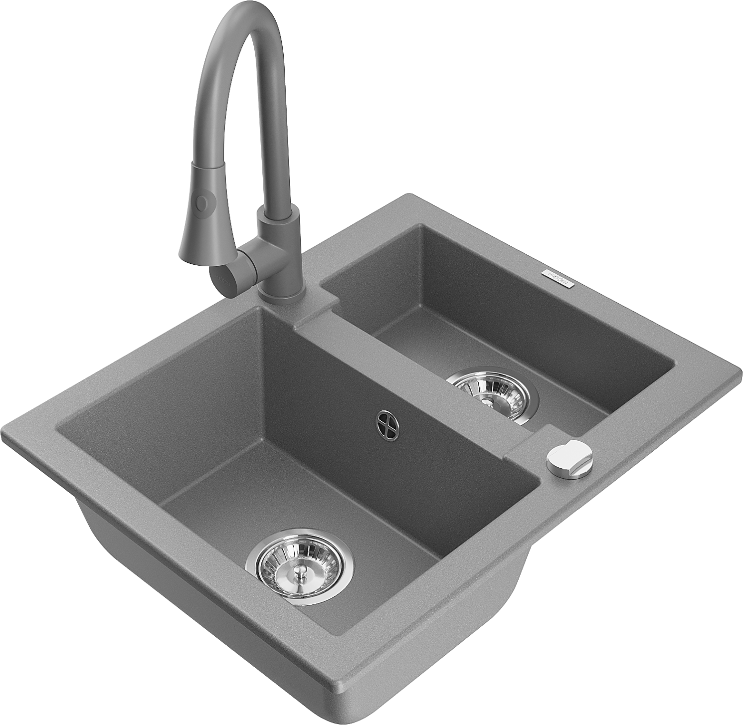 Mexen Carlos zlewozmywak granitowy 1,5-komorowy z baterią kuchenną Elia, szary - 6518-71-670101-71
