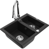 Mexen Carlos zlewozmywak granitowy 1,5-komorowy z baterią kuchenną Elia, czarny/srebrny metalik - 6518-73-670101-00