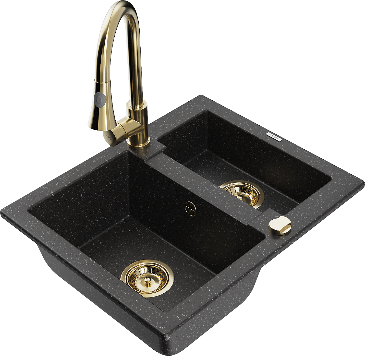 Mexen Carlos zlewozmywak granitowy 1,5-komorowy z baterią kuchenną Elia, czarny/srebrny metalik - 6518-73-670101-50