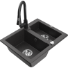 Mexen Carlos zlewozmywak granitowy 1,5-komorowy z baterią kuchenną Elia, czarny/srebrny metalik - 6518-73-670101-70