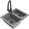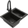Mexen Carlos zlewozmywak granitowy 1,5-komorowy z baterią kuchenną Elia, czarny/srebrny metalik - 6518-73-670101-70-B