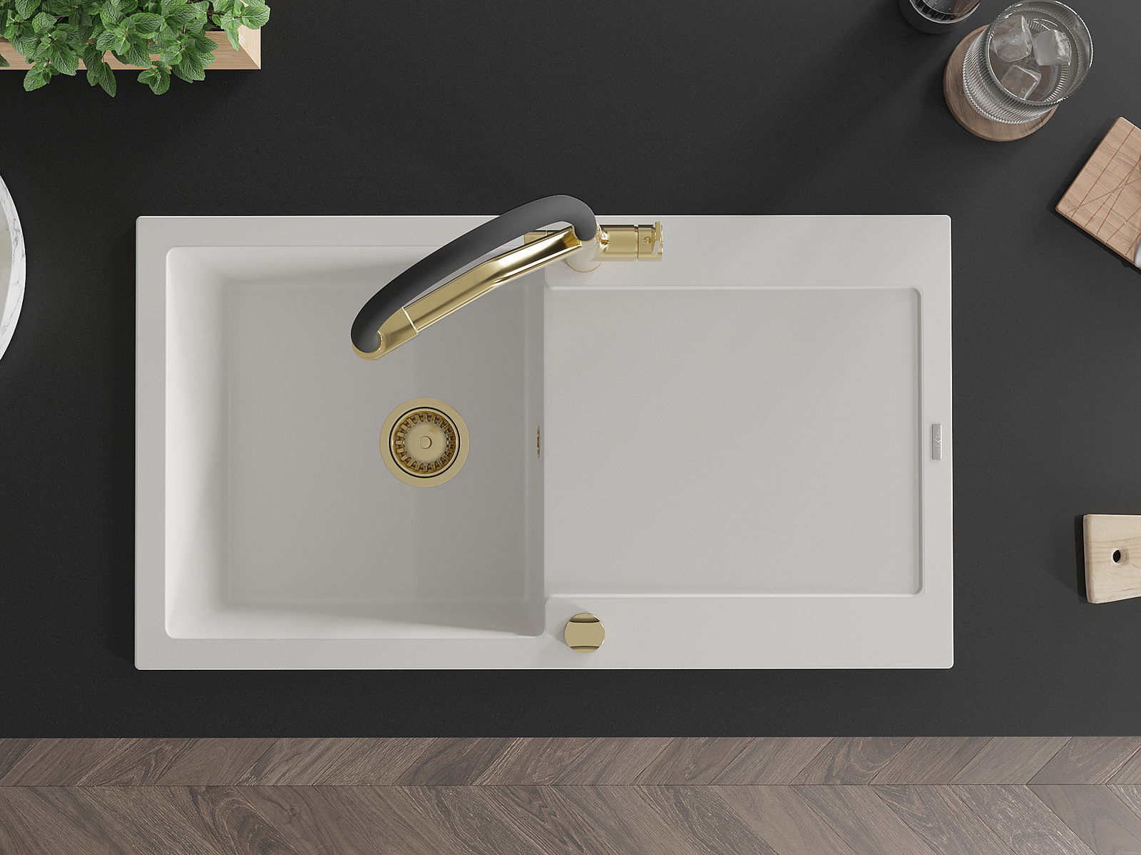Dzięki zastosowaniu uniwersalnego systemu mocowania, zlew jest odwracalny, a ociekacz może zostać zamontowany na blacie po lewej lub prawej stronie. W ten sposób możesz z łatwością dopasować stronę do swoich potrzeb i warunków.
