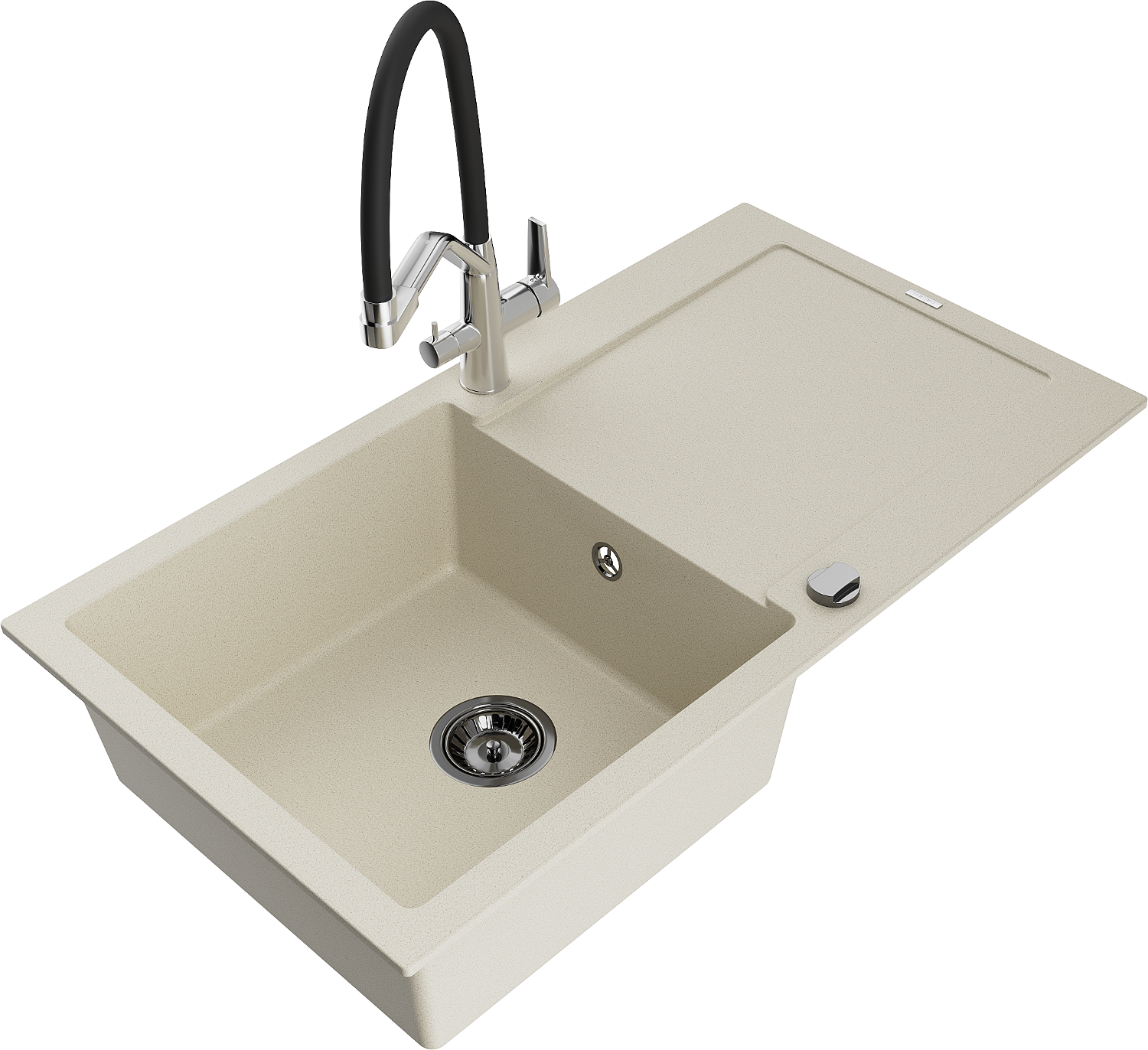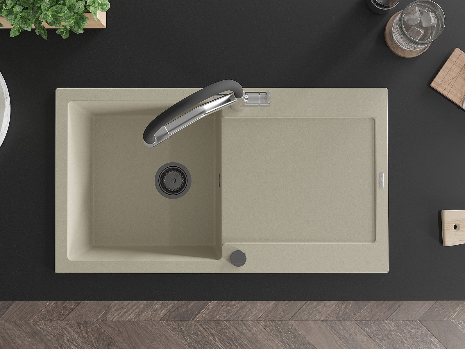 Mexen Leo zlewozmywak granitowy 1-komorowy z ociekaczem i baterią kuchenną Duo, beżowy - 6501-69-671701-07-B