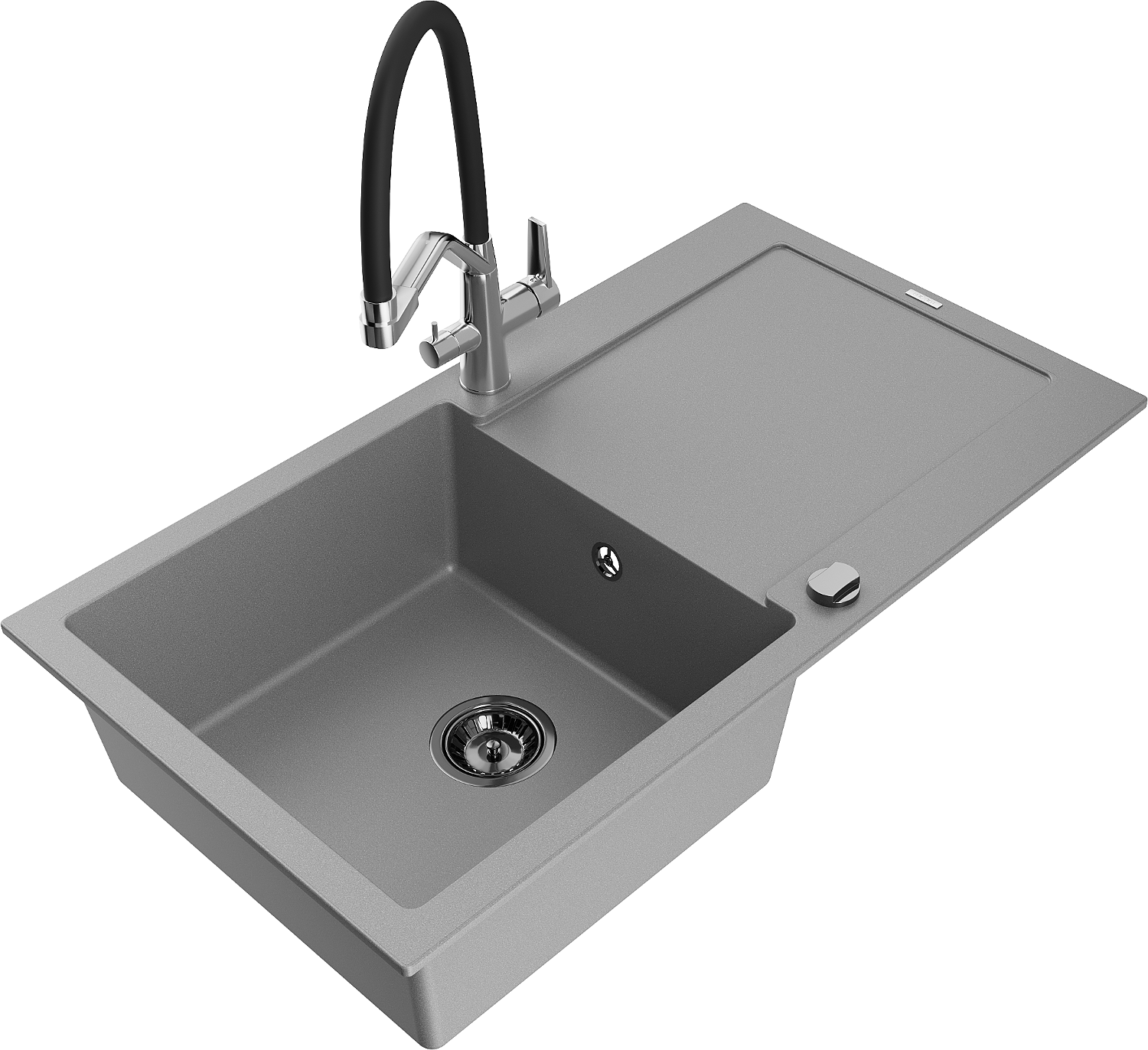Mexen Leo zlewozmywak granitowy 1-komorowy z ociekaczem i baterią kuchenną Duo, szary - 6501-71-671701-07-B