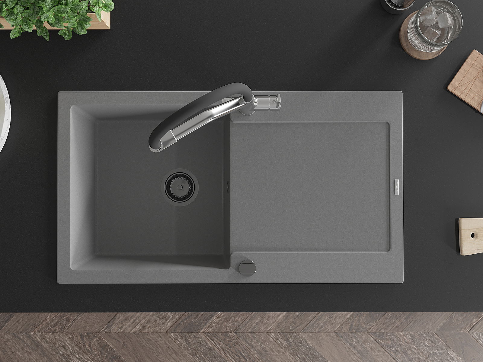 Dzięki zastosowaniu uniwersalnego systemu mocowania, zlew jest odwracalny, a ociekacz może zostać zamontowany na blacie po lewej lub prawej stronie. W ten sposób możesz z łatwością dopasować stronę do swoich potrzeb i warunków.