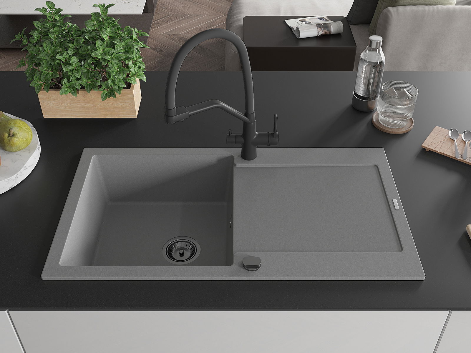 Zlewozmywak został wykonany z wysokiej jakości granitu. Stanowi eleganckie, a przede wszystkim praktyczne uzupełnienie każdej kuchni, niezależnie od jej stylu. Wysoka jakość oraz trwałość granitu zapewniają wieloletnie użytkowanie.