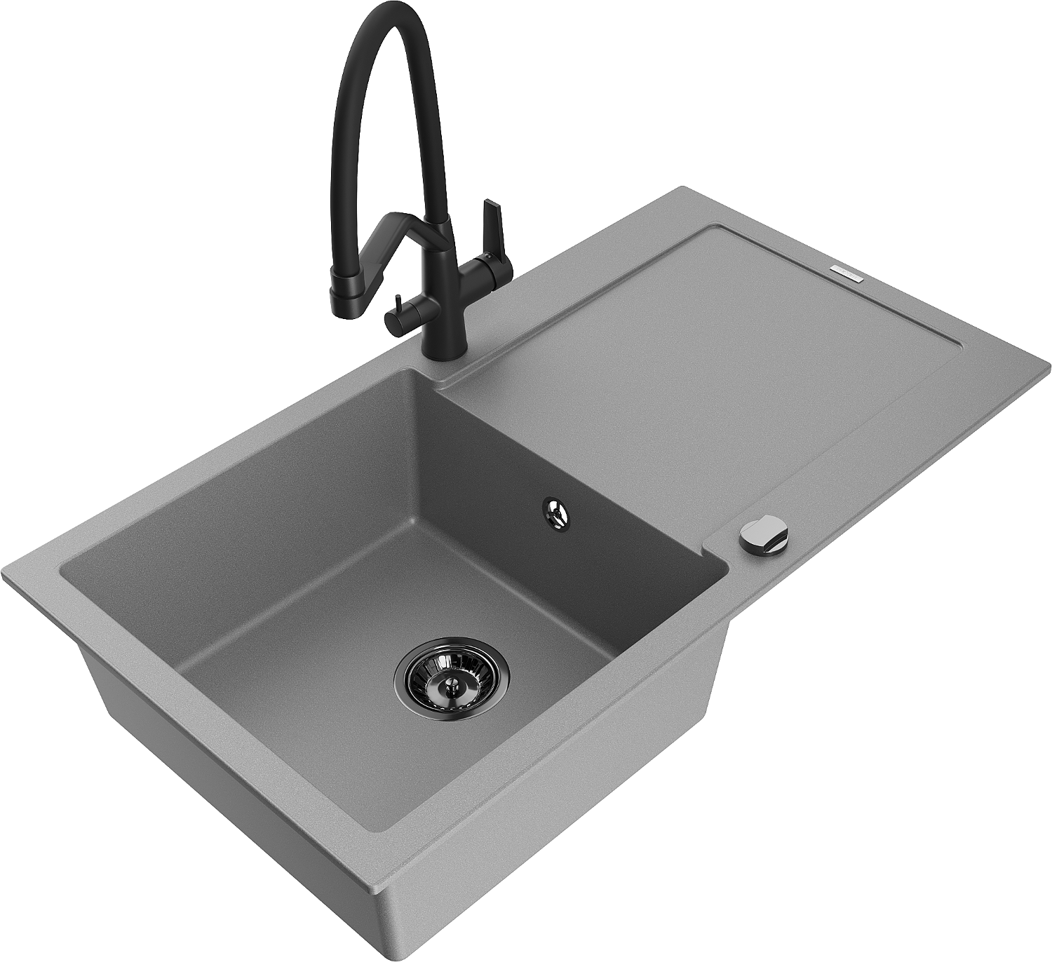 Mexen Leo zlewozmywak granitowy 1-komorowy z ociekaczem i baterią kuchenną Duo, szary - 6501-71-671701-70-B