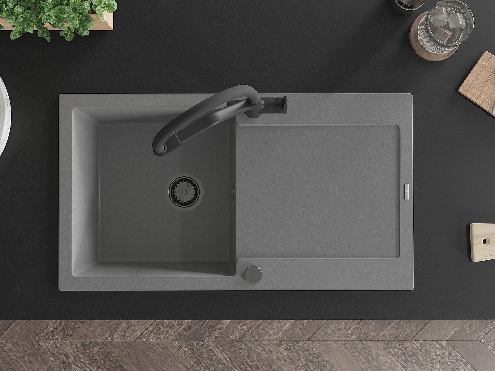 Dzięki zastosowaniu uniwersalnego systemu mocowania, zlew jest odwracalny, a ociekacz może zostać zamontowany na blacie po lewej lub prawej stronie. W ten sposób możesz z łatwością dopasować stronę do swoich potrzeb i warunków.