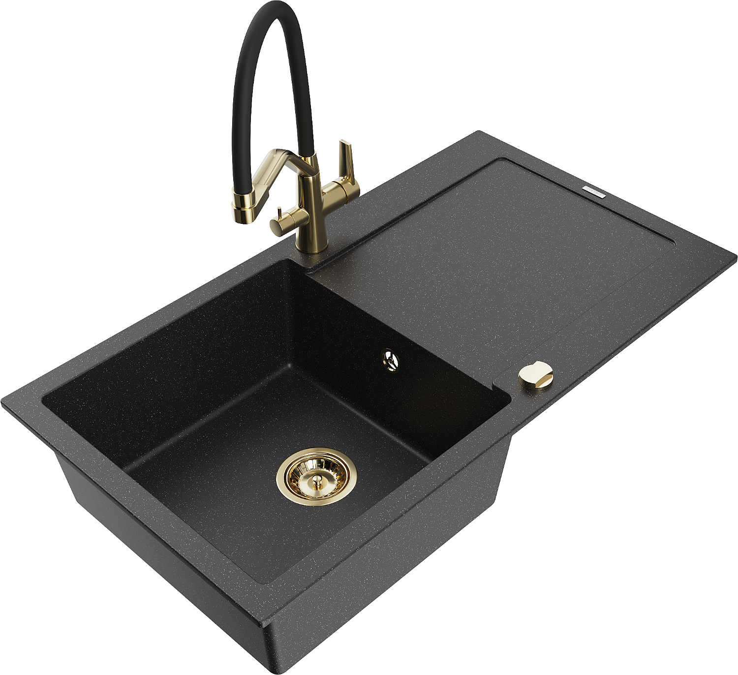 Mexen Leo zlewozmywak granitowy 1-komorowy z ociekaczem i baterią kuchenną Duo, czarny/srebrny metalik - 6501-73-671701-57-G