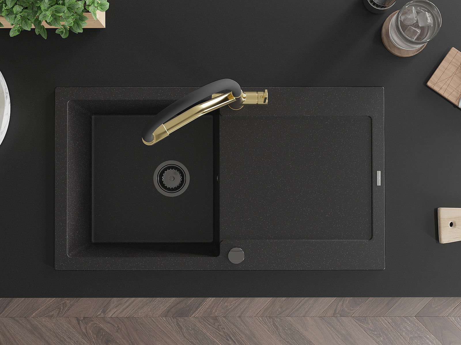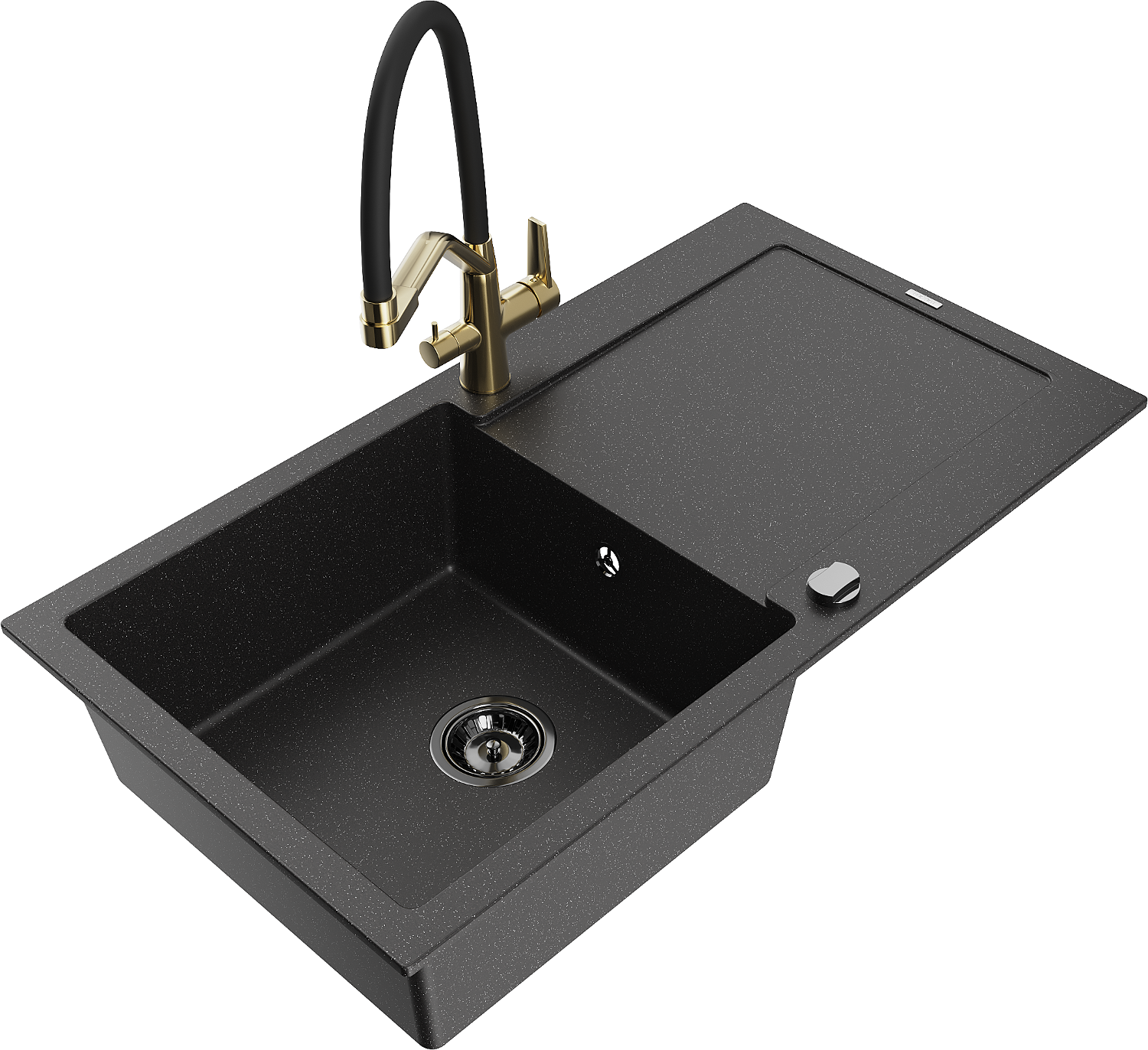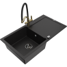 Mexen Leo zlewozmywak granitowy 1-komorowy z ociekaczem i baterią kuchenną Duo, czarny/srebrny metalik - 6501-73-671701-57-B