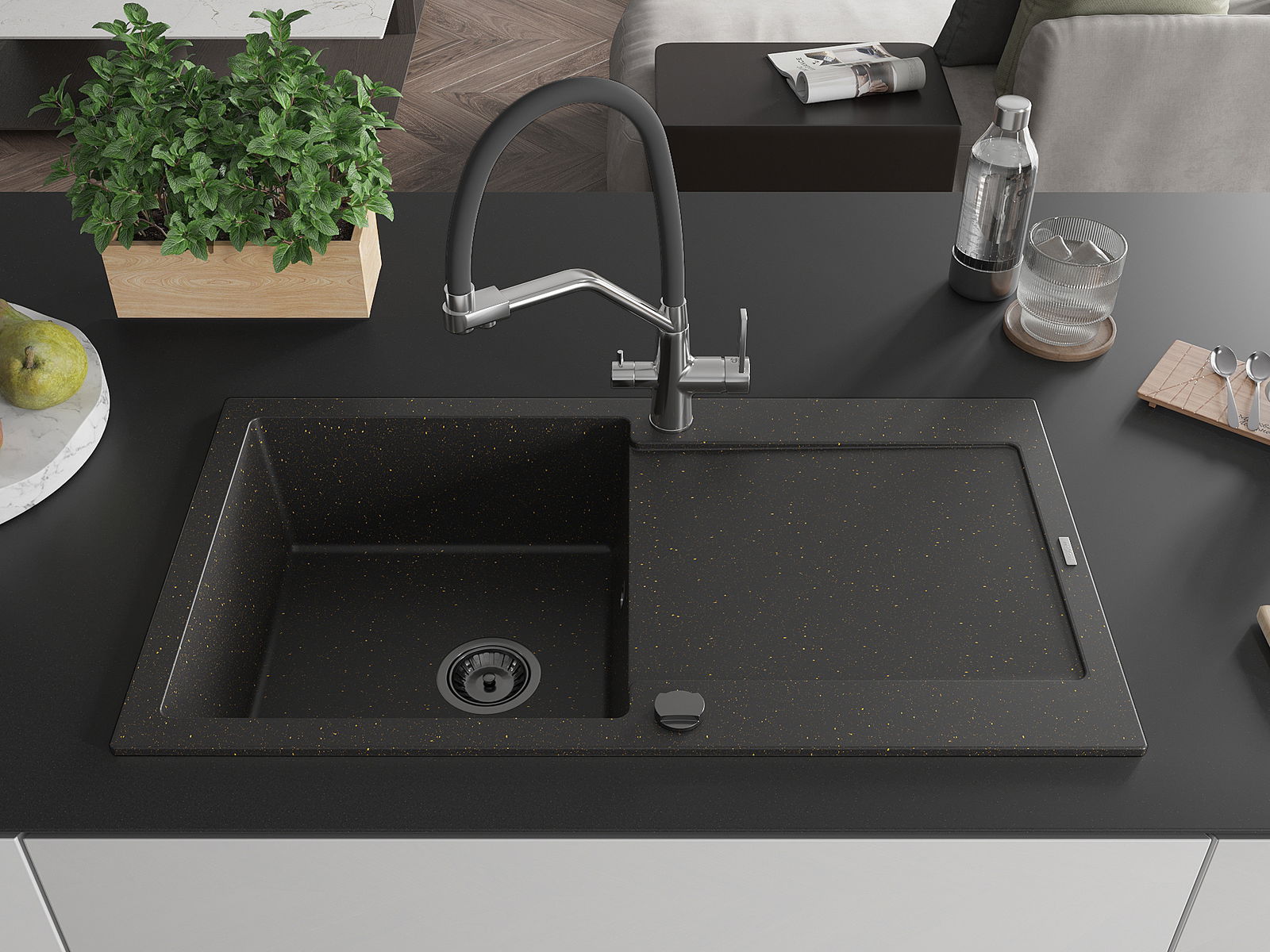 Dobrze zabezpieczona powierzchnia zlewozmywaka hamuje wnikanie zabrudzeń do jego wewnętrznych struktur. Dzięki temu utrzymanie zlewu w czystości jest jeszcze łatwiejsze, a jego powierzchnia zachowuje swoją estetykę na dłużej.