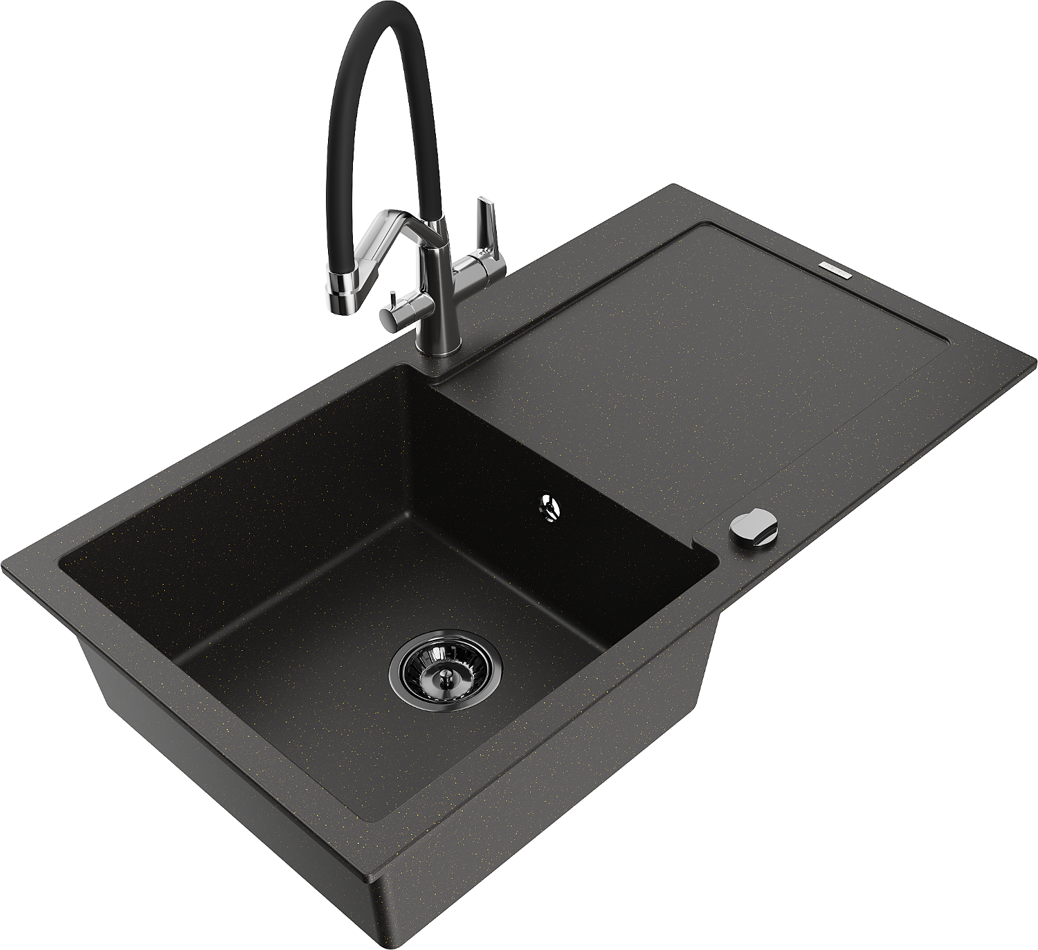 Mexen Leo zlewozmywak granitowy 1-komorowy z ociekaczem i baterią kuchenną Duo, czarny/złoty metalik - 6501-75-671701-07-B