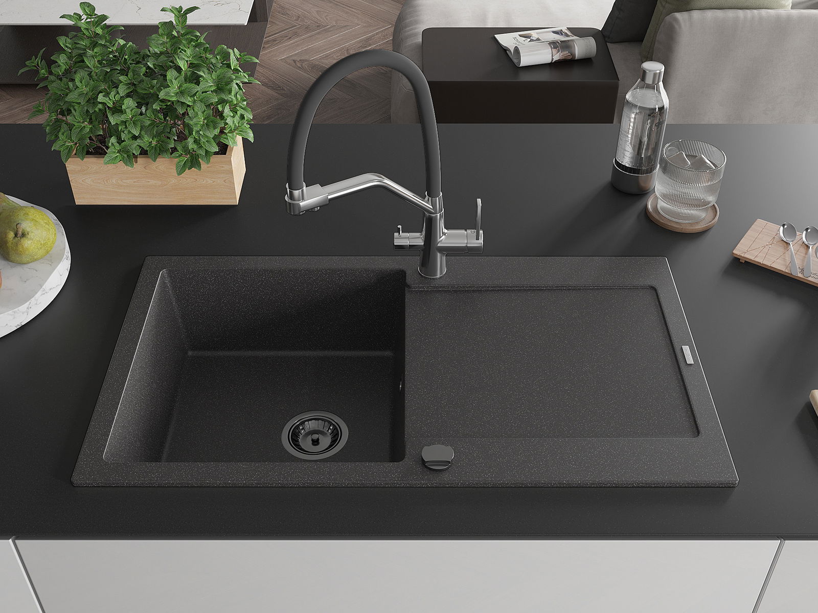 Zlewozmywak został wykonany z wysokiej jakości granitu. Stanowi eleganckie, a przede wszystkim praktyczne uzupełnienie każdej kuchni, niezależnie od jej stylu. Wysoka jakość oraz trwałość granitu zapewniają wieloletnie użytkowanie.